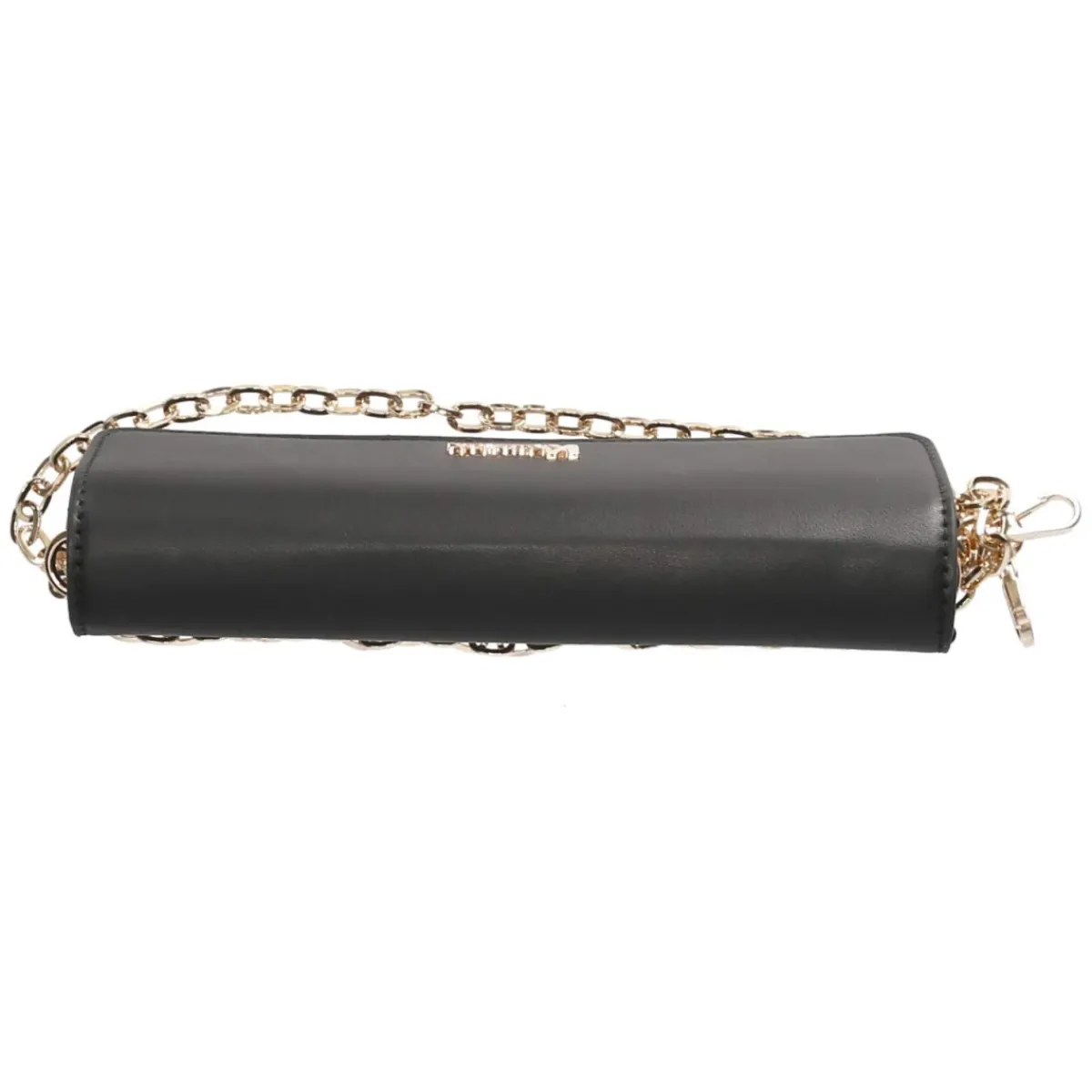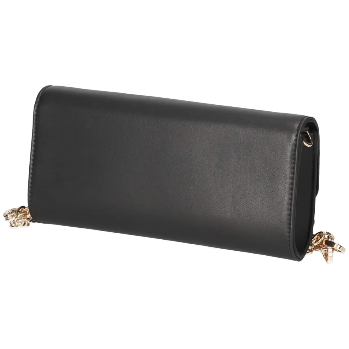 Diese schwarze Abendtasche vereint klare Linien mit edlem Glanz und passt perfekt zu eleganten Anlässen. Das kompakte Format von ca. 11 x 23 x 5 cm fasst die wichtigsten Essentials, während ein übersichtliches Hauptfach mit Steckfach und vier Kartenfächern das Portemonnaie ersetzt. Der Überschlag schließt sicher per Magnetverschluss, dezent akzentuiert vom typischen Markenlogo. Die silberglänzende Metallkette mit ca. 130 cm Länge und passenden Metall-Elementen ermöglicht entspanntes Tragen über der Schulter oder crossover. Das Volumen von rund 1 Liter ist ideal für Smartphone, Schlüssel und Lippenstift, ohne die schlanke Silhouette zu beeinträchtigen. Modetipp: Zur satinschimmernden Slipdress-Kombination wirkt die Tasche als ruhiger, grafischer Gegenpol; mit zarten Strappy-Heels und einem silbernen Armreif entsteht ein harmonisch abgestimmter Abendlook.