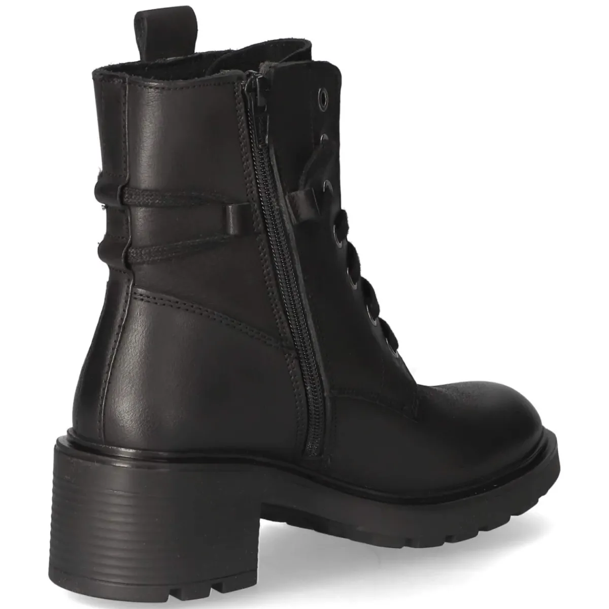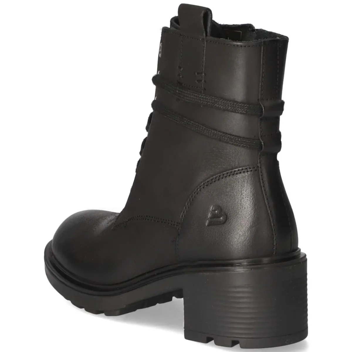 Dieser Ankle Boot von Bullboxer überzeugt mit elegantem Design und funktionalen Details. Glattes, atmungsaktives Echtleder formt den runden Leisten und schmiegt sich dank verstärkter Ferse stabil an den Fuß. Der 6 cm hohe Blockabsatz sorgt für sicheren Stand, während das gepolsterte Fußbett komfortabel durch den Tag trägt. Schnürung und seitlicher Reißverschluss, ergänzt um einen zusätzlichen Zipper und Anziehlasche, ermöglichen ein schnelles An- und Ausziehen. Die rutschfeste Profilsohle bietet Halt auf verschiedenen Untergründen. Dezente Markendetails runden den schwarzen Look ab. Das Modell fällt kleiner aus, weshalb sich die Wahl einer Nummer größer empfiehlt. Modetipp: Besonders stimmig zu Cropped-Denim und einem strukturierten Blazer, alternativ zu Midirock und blickdichter Strumpfhose.