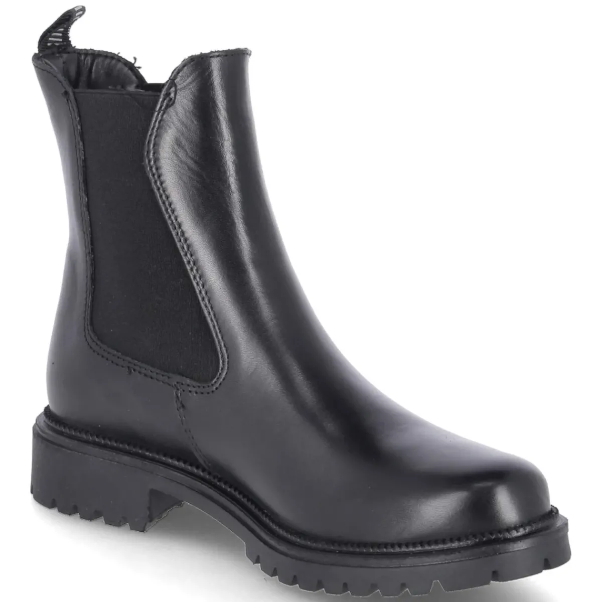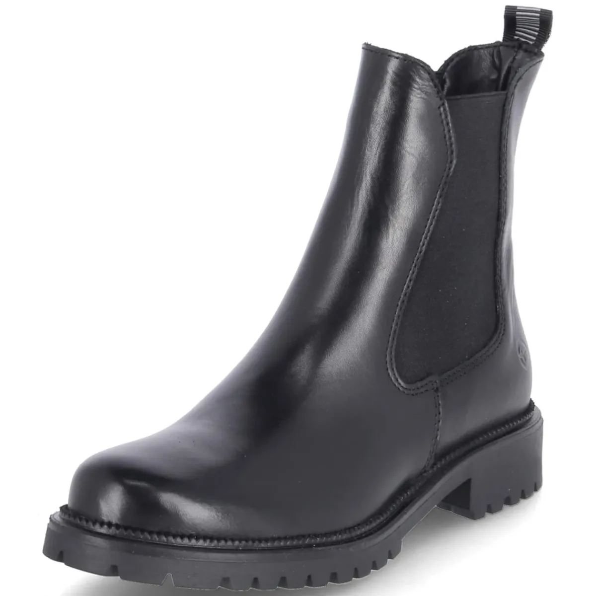 Zeitloser Klassiker mit komfortabler Note: Der Tamaris Chelsea Boot für Damen verbindet puristische Linien mit einem robusten Material-Mix aus Leder und Textil. Das leicht wärmende Warmfutter und die weiche Textildecksohle bieten angenehmen Komfort an kühlen Tagen. Dank unkompliziertem Einstieg ohne Verschluss und elastischen Einsätzen sitzt der Boot sicher und flexibel. Der 3,5 cm hohe Blockabsatz sorgt für Stabilität und ein entspanntes Laufgefühl, die runde Spitze komplettiert den cleanen Look in Schwarz. Fällt normal aus und begleitet souverän durch Büro, City und Wochenendmomente. Die sorgfältige Verarbeitung unterstreicht die langlebige Anmutung dieses Allrounders. Modetipp: Zu Cropped-Jeans oder Culottes und einem strukturierten Wollmantel entsteht ein moderner Kontrast; Stricksocken in Ton-in-Ton-Optik setzen einen subtilen Akzent.