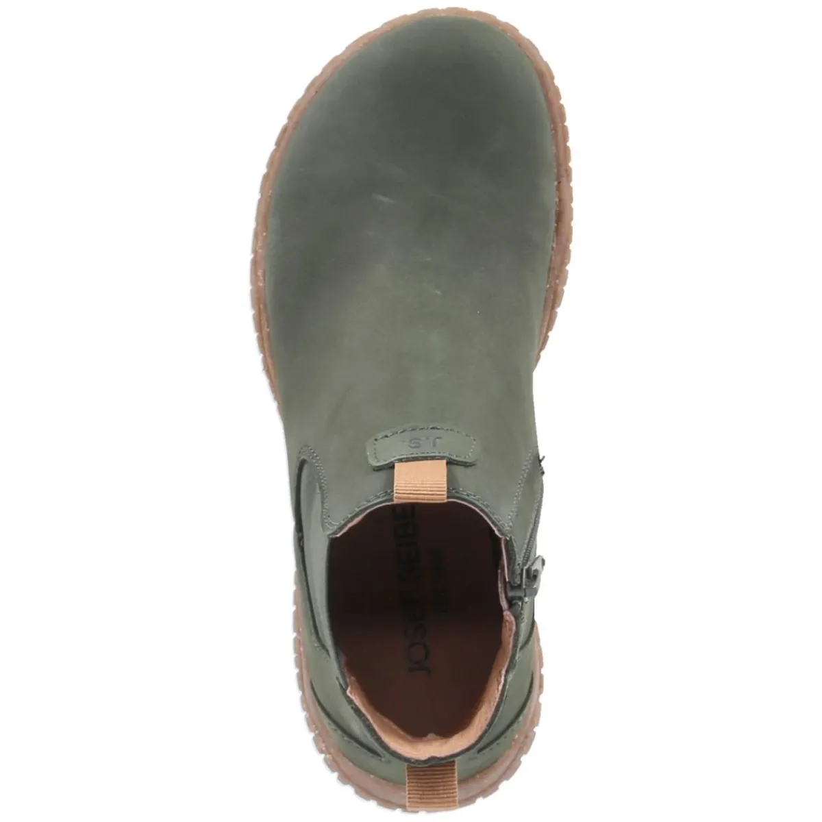 Der Chelsea Boot WYNONA 04 von Josef Seibel zeigt, wie lässiger Stil und durchdachter Komfort ineinandergreifen. Das Obermaterial aus Rauleder in sattem Grün unterstreicht den natürlichen Look, während langlebiges Echtleder Stabilität und Wertigkeit bringt. Die runde Kappe, ein großer seitlicher Elastikeinsatz und der praktische Reißverschluss erleichtern das Anziehen, zusätzlich unterstützen zwei Anziehlaschen. Die verstärkte Ferse sorgt für Halt, die sehr flexible, rutschhemmende Laufsohle für ein geschmeidiges Abrollen. Innen verwöhnt ein gepolstertes, herausnehmbares Fußbett mit Lederdecksohle den Fuß; ideal, wenn eigene Einlagen genutzt werden. Der Leisten fällt normal aus und richtet sich an Damen, die Bequemlichkeit und Design schätzen. Modetipp: Der Grünton harmoniert hervorragend mit cremefarbenen Strickteilen und dunkler Denim; ein Oversize-Mantel in Kamel ergänzt den Look modern und zeitlos.