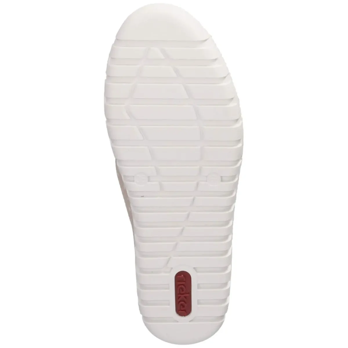 Der Rieker Halbschuh in Taupe kombiniert luftige Leichtigkeit mit komfortorientiertem Design. Gelochtes Obermaterial aus glattem, atmungsaktivem Echtleder und ein angenehmes Lederfutter sorgen für ein frisches Fußklima, während die runde Schuhspitze und die gepolsterte Decksohle aus Leder spürbare Bequemlichkeit bieten. Die flexible, rutschhemmende Laufsohle gibt Halt im Alltag, der verstärkte Fersenbereich stabilisiert bei jedem Schritt. Praktisch: der Schnürverschluss mit bequemer Elastikschnürung erleichtert den Einstieg und sitzt zuverlässig, ganz ohne Druckstellen. Weißfarbene Akzente und dezente Markendetails setzen moderne Highlights. Das Modell fällt normal aus und ist ideal für Damen, die einen vielseitigen Begleiter suchen. Modetipp: zu cropped Jeans, leichter Leinenbluse und einer hellen Crossbody-Bag kombinieren.