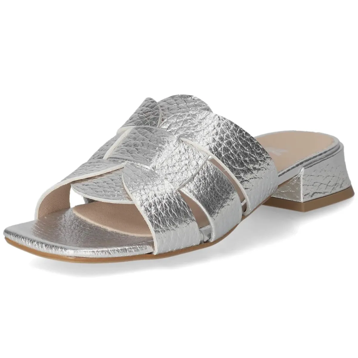 Kaerlek interpretiert die klassische Pantolette mit moderner Eleganz: Silbernes Glattleder mit elegant schimmernder Oberfläche trifft auf eine klare, offene Silhouette, die dem Fuß schmeichelt. Der unkomplizierte Einstieg ohne Verschluss macht den Schuh zum verlässlichen Begleiter im Alltag, während der 3 cm hohe Blockabsatz stabilen Halt bietet und die Silhouette dezent streckt. Die Lederdecksohle und das weich gepolsterte Fußbett sorgen für komfortables Tragegefühl selbst an langen Tagen. Eine flexible, rutschhemmende Laufsohle unterstützt einen sicheren Auftritt auf unterschiedlichen Untergründen. Dank normaler Passform fällt das Modell größengetreu aus. Modetipp: Für den Day-to-Night-Look mit Satin-Midirock und weißem Popeline-Hemd kombinieren, dazu silberne Creolen – die metallische Nuance der Pantoletten setzt den perfekten Glanzakzent.