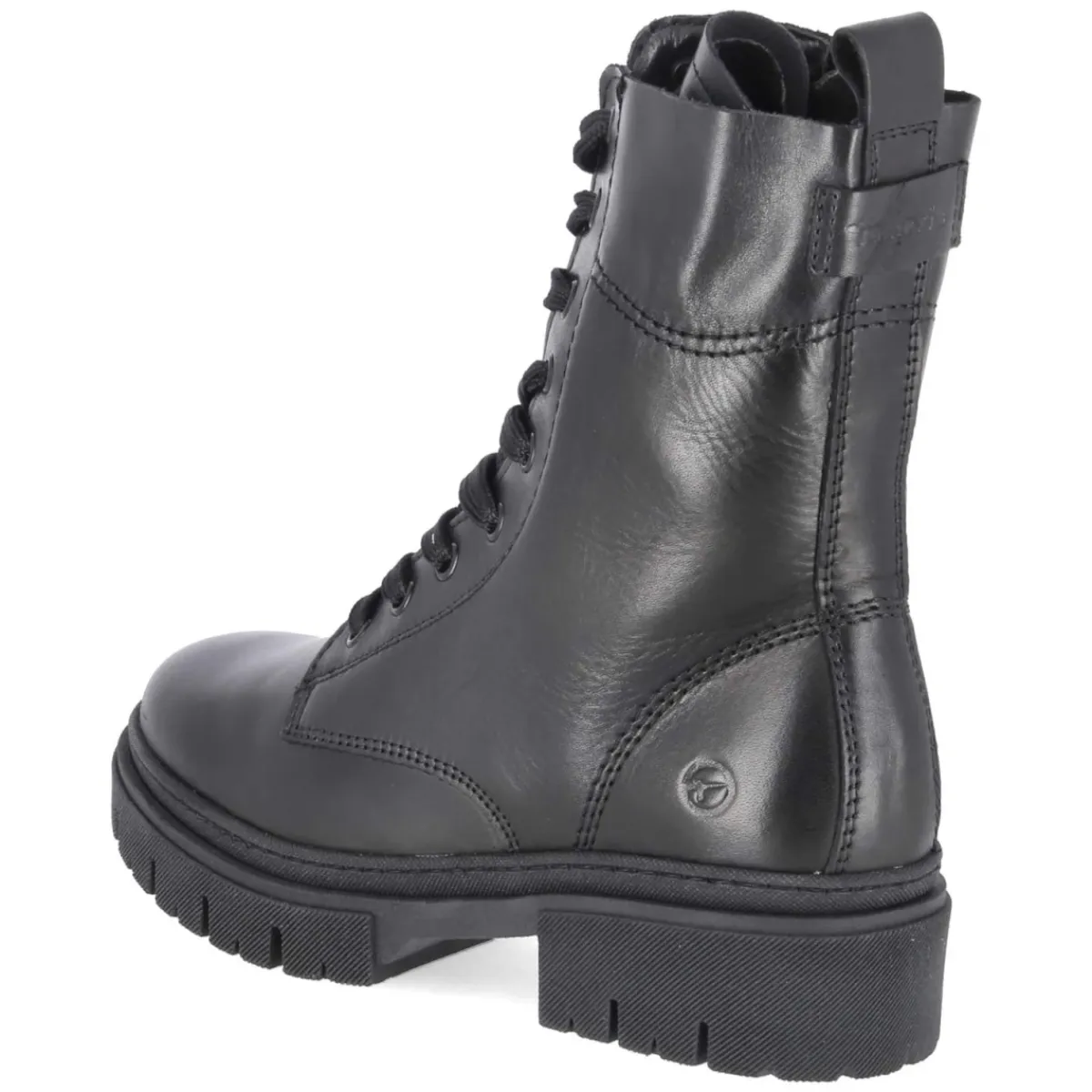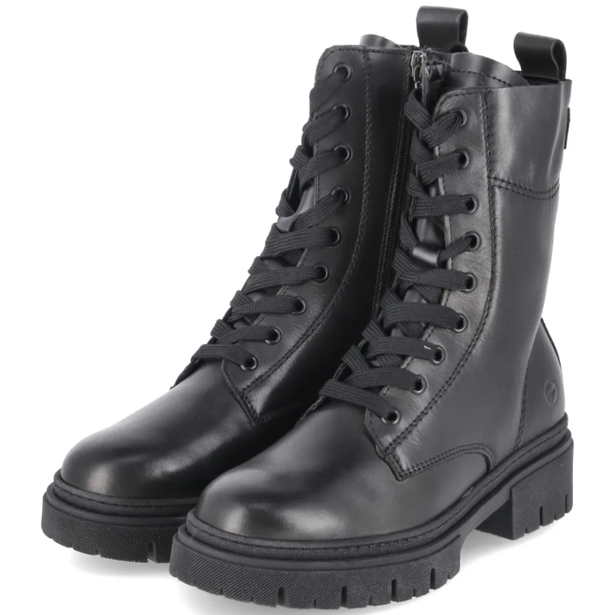 Diese Schnürboots von Tamaris verbinden urbanen Look mit zuverlässigem Komfort. Der robuste Material-Mix aus Leder und Synthetik erhält durch die schwarze Farbe ein zeitloses Finish, während der 4,5 cm hohe Blockabsatz Stabilität schenkt und die Silhouette dezent streckt. Schnürsenkel und seitlicher Reißverschluss erleichtern das An- und Ausziehen und sorgen zugleich für eine passgenaue Regulierung. Ein leichtes Futter wärmt an kühlen Tagen, die textile Decksohle unterstützt den Fuß angenehm. Mit runder Kappe, verstärktem Fersenbereich und flexibler, rutschfester Profilsohle gelingen entspannte Schritte auf wechselndem Untergrund. Der Größenhinweis fällt normal aus, wodurch die Wahl der üblichen Größe unkompliziert ist. Modetipp: Mit Cropped-Jeans, grobem Strickpullover und langem Wollmantel entsteht ein moderner City-Look mit klaren Linien.