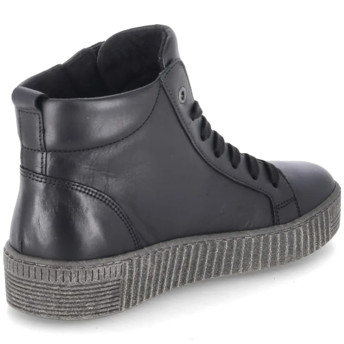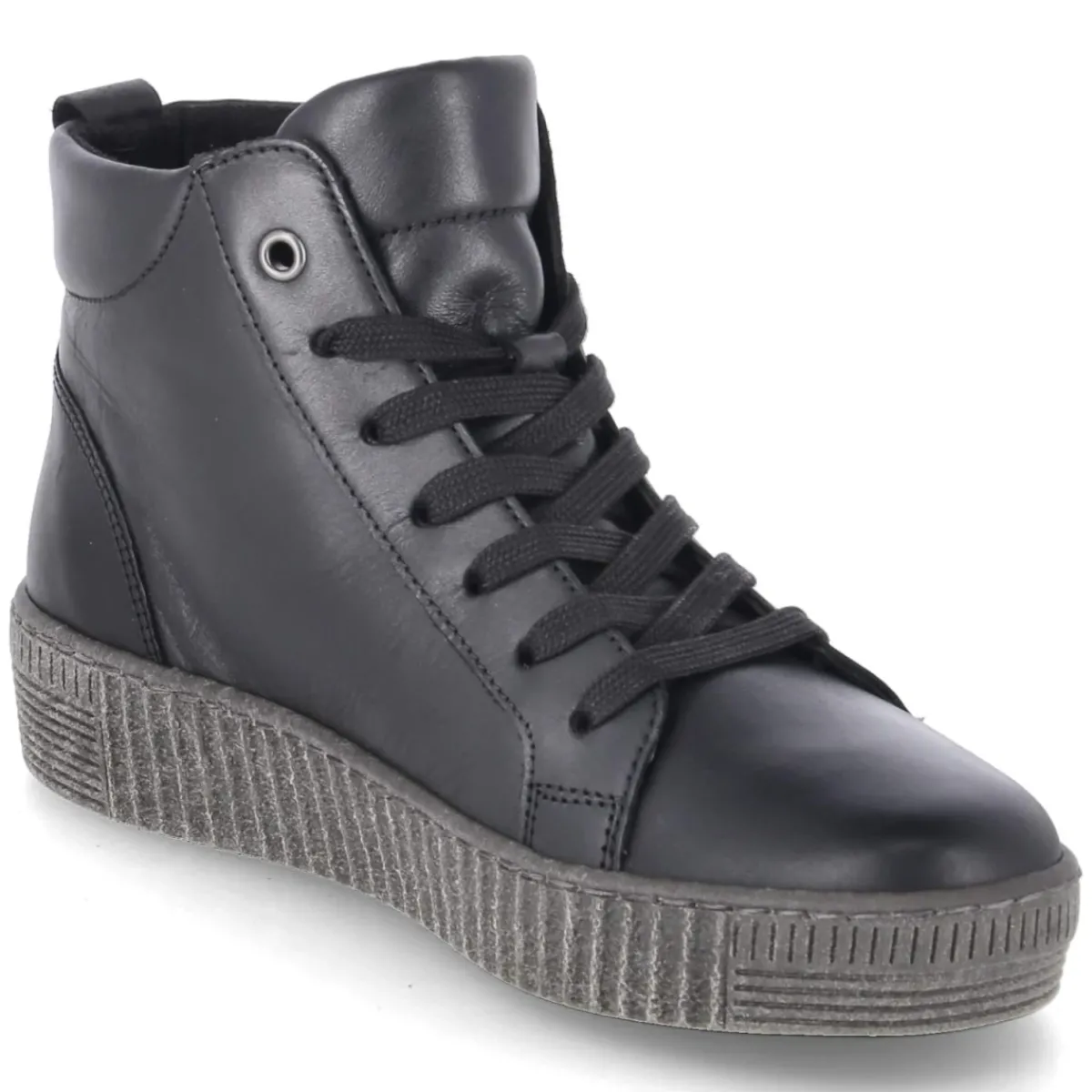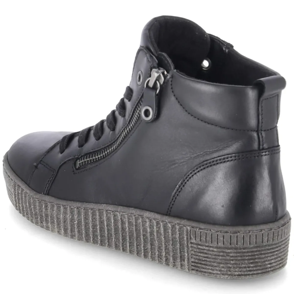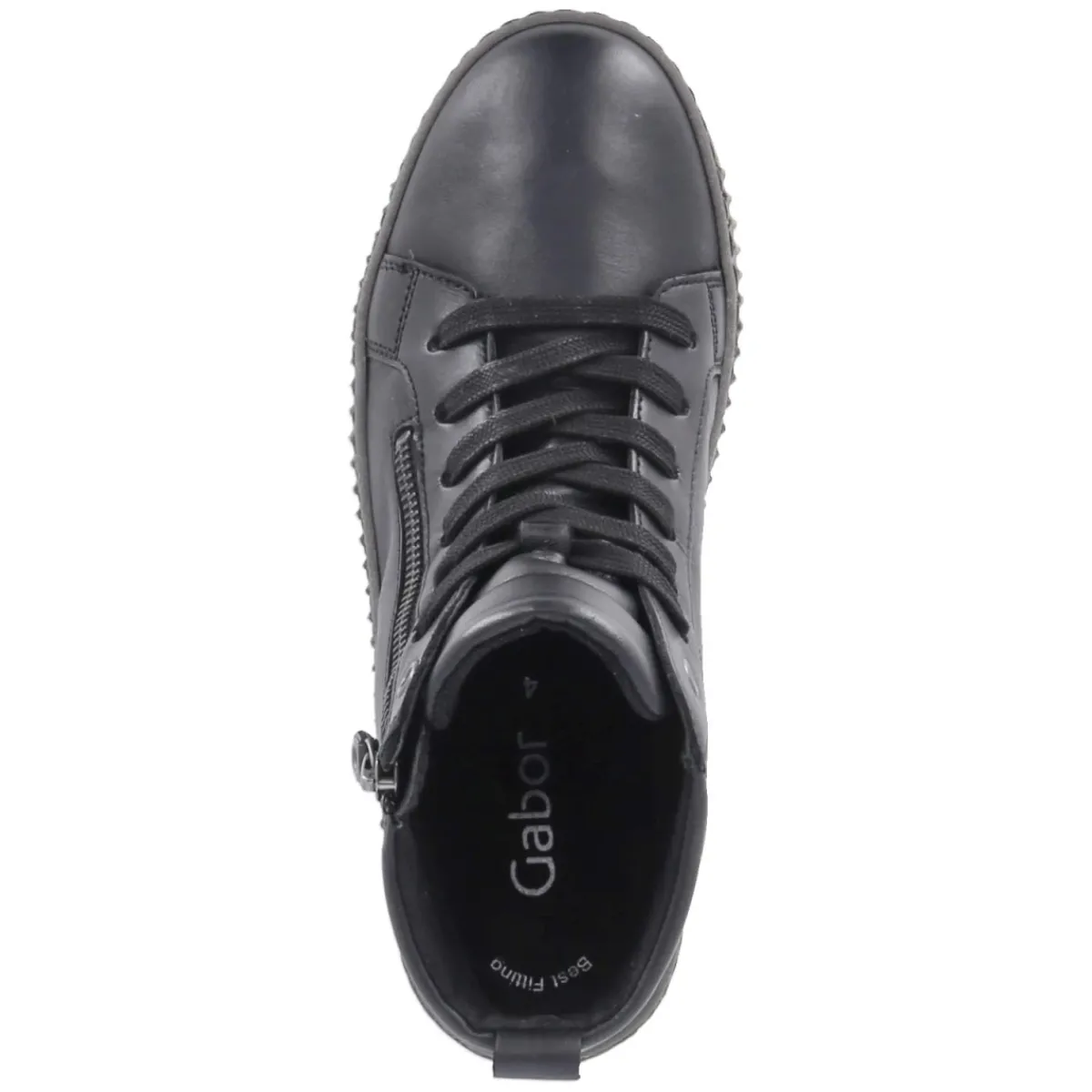 Diese schwarzen Schnürstiefeletten von Gabor vereinen eine sportliche Optik mit hochwertiger Verarbeitung. Das langlebige Echtleder in glatter Ausführung verleiht dem Modell eine edle Anmutung, während die runde Schuhspitze und die verstärkte Ferse für ein bequemes, sicheres Tragegefühl sorgen. Durch die Kombination aus Schnürsenkeln und Reißverschluss gelingt das An- und Ausziehen besonders mühelos und die Passform lässt sich präzise regulieren. Innen punktet die textile Decksohle zusammen mit dem komfortablen Wechselfußbett, das bei Bedarf gegen eigene Einlagen ausgetauscht werden kann. Eine flexible, rutschfeste Laufsohle unterstützt Halt auf verschiedensten Untergründen. Das Modell fällt normal aus und eignet sich damit ideal für den Alltag. Modetipp: Besonders harmonisch wirken die Stiefeletten zu einer dunkel gewaschenen Slim-Jeans, Oversize-Strickpullover und einem strukturierten Wollmantel in Grautönen.