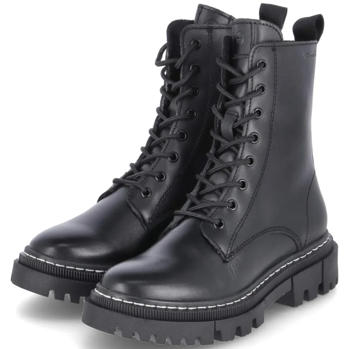 Diese Tamaris Schnürstiefeletten aus langlebigem Echtleder setzen auf zeitlose Schwarztöne und eine feminine, zugleich stabile Linienführung. Das weiche Warmfutter mit leichtem Griff verwöhnt an kühlen Tagen, während die textile Decksohle und das herausnehmbare Wechselfußbett für angenehme Dämpfung und individuelle Einlagenfreiheit sorgen. Ein 4,5 cm hoher Blockabsatz verleiht dezenten Lift und bleibt auch bei längeren Strecken komfortabel. Praktisch im Alltag: Schnürsenkel für die genaue Anpassung und ein zusätzlicher Reißverschluss für den schnellen Einstieg. Die runde Spitze schafft Zehenfreiheit, der Größenhinweis bestätigt ein normales Ausfallen. Modetipp: Zur Straight-Jeans in Dunkelblau und einem strukturierten Wollmantel getragen entsteht ein moderner City-Look mit klarer Silhouette.