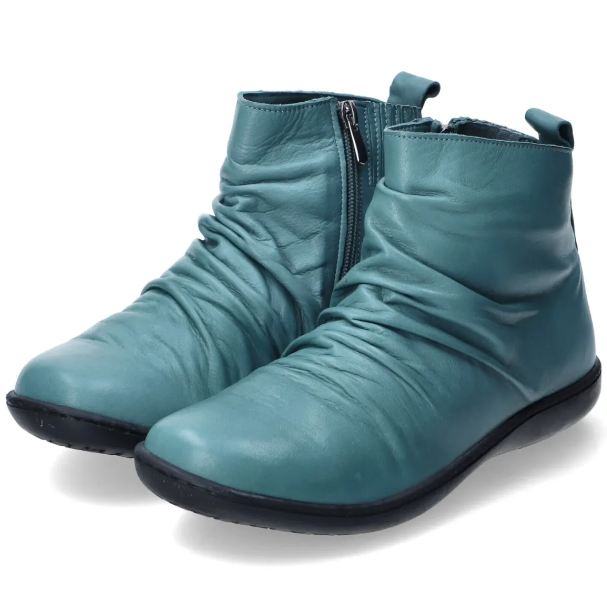 Die Stiefeletten von Andrea Conti verbinden charakterstarkes Design mit alltagstauglichem Komfort. Das Obermaterial aus hochwertigem Glattleder zeigt sich in lebhaftem Türkis und setzt als Farbakzent moderne Outfits gekonnt in Szene. Die runde Schuhspitze und die markanten Ziernähte verleihen eine zeitlose Note, während Reißverschluss, Anziehlasche und Elastikeinsatz ein müheloses Hineinschlüpfen ermöglichen. Innen sorgt weiches Textilfutter für ein angenehmes Tragegefühl, das gepolsterte Lederfußbett verwöhnt zusätzlich und lässt sich bei Bedarf dank Wechselfußbett-Funktion austauschen. Der verstärkte Fersenbereich gibt Stabilität, die rutschhemmende Laufsohle überzeugt auf verschiedenem Untergrund. Mit normaler Passform gefertigt, bietet das Modell eine zuverlässige Größenorientierung. Modetipp: Der Türkiston harmoniert besonders schön mit dunklem Denim und einem cremefarbenen Oversize-Strick, dazu silberne Accessoires für einen frischen Kontrast.