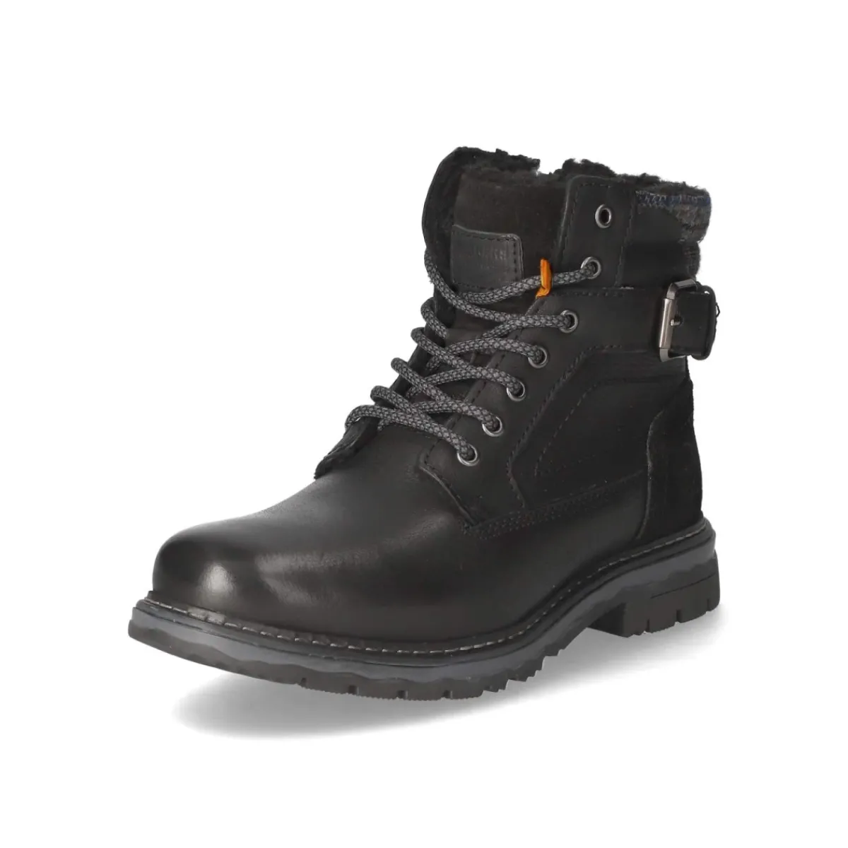 Diese Winterboots von Dockers vereinen robuste Funktion und klassisches Design. Das Obermaterial aus langlebigem Echtleder überzeugt in sattem Schwarz und zeigt sich widerstandsfähig im Alltag. Für wohlige Wärme sorgt das weiche Warmfutter, während die Textildecksohle ein angenehmes Fußklima unterstützt. Der runde Leisten bietet Zehenfreiheit, der 3 cm hohe Blockabsatz steht für solide Stabilität und ein entspanntes Abrollen. Durch die Kombination aus Schnürung und praktischem Reißverschluss gelingt der Einstieg besonders komfortabel und die Passform lässt sich präzise regulieren. Der Größenhinweis fällt normal aus, wodurch die Wahl der gewohnten Größe naheliegt. Modetipp: Mit Raw-Denim, Feinstrick und einem dunklen Wollmantel entsteht ein urbaner Winterlook, der sowohl im Büro als auch beim Stadtbummel souverän wirkt.