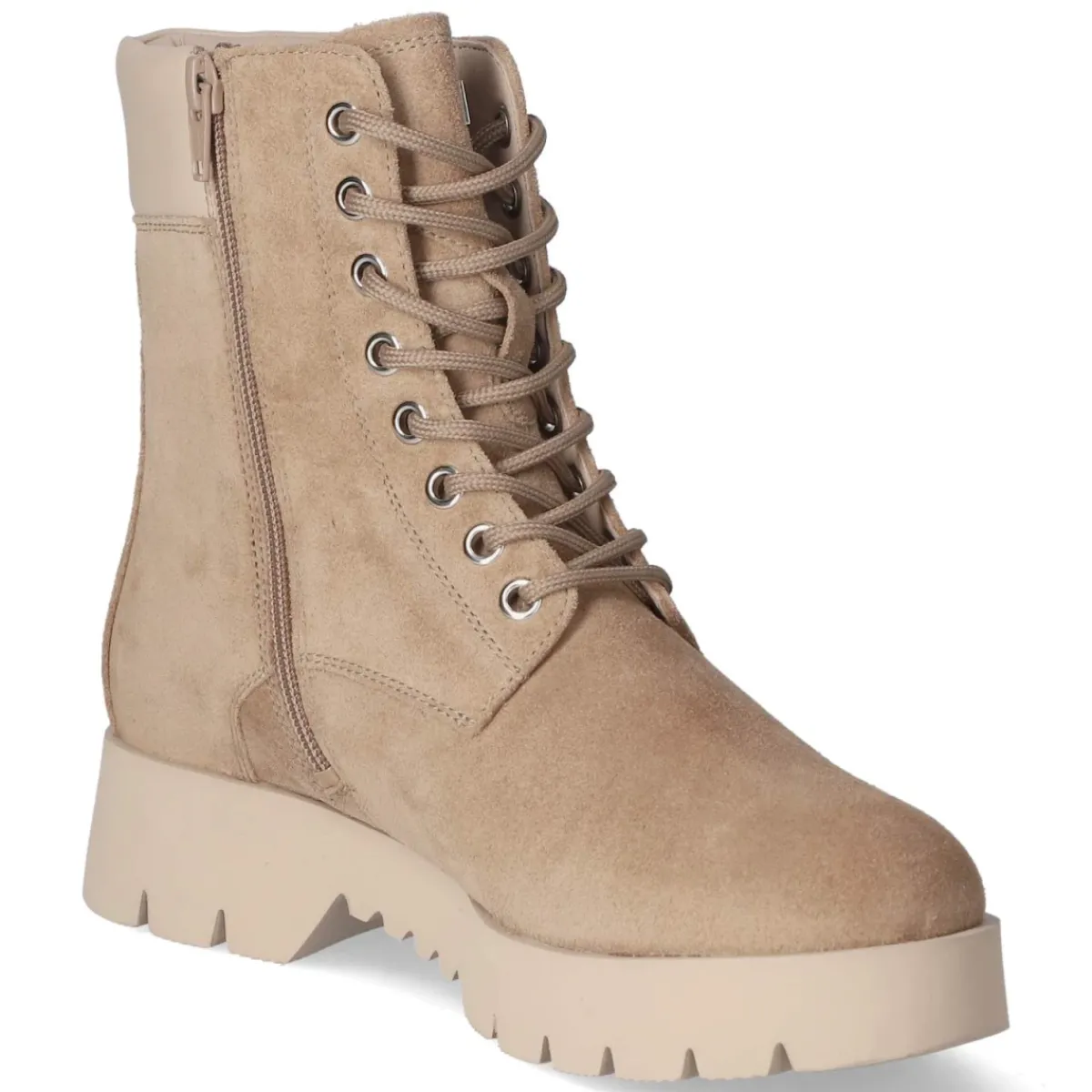 Die Winterschnürstiefeletten von Högl verbinden eine feminine Silhouette mit souveräner Wintertauglichkeit. Weiches Rauleder trifft auf atmungsaktives Echtlederfutter und eine textile Decksohle, die den Fuß auch an langen Tagen angenehm umschließt. Das Warmfutter hält zuverlässig warm, während die Kombination aus Schnürsenkeln und seitlichem Reißverschluss einen bequemen Einstieg und eine individuell justierbare Passform ermöglicht. Der 4 cm hohe Blockabsatz sorgt für Stabilität, die runde Spitze für entspanntes Abrollen. Eine flexible, rutschfeste Sohle und die verstärkte Ferse geben Halt auf glatten Wegen, der Schaftrand in Glattleder setzt einen eleganten Akzent. In sanftem Beige und mit normal ausfallender Passform zeigt sich das Modell äußerst kombinationsfreudig. Modetipp: Zu Wollmantel und Straight-Leg-Denim entsteht ein zeitloser, urbaner Winterlook.