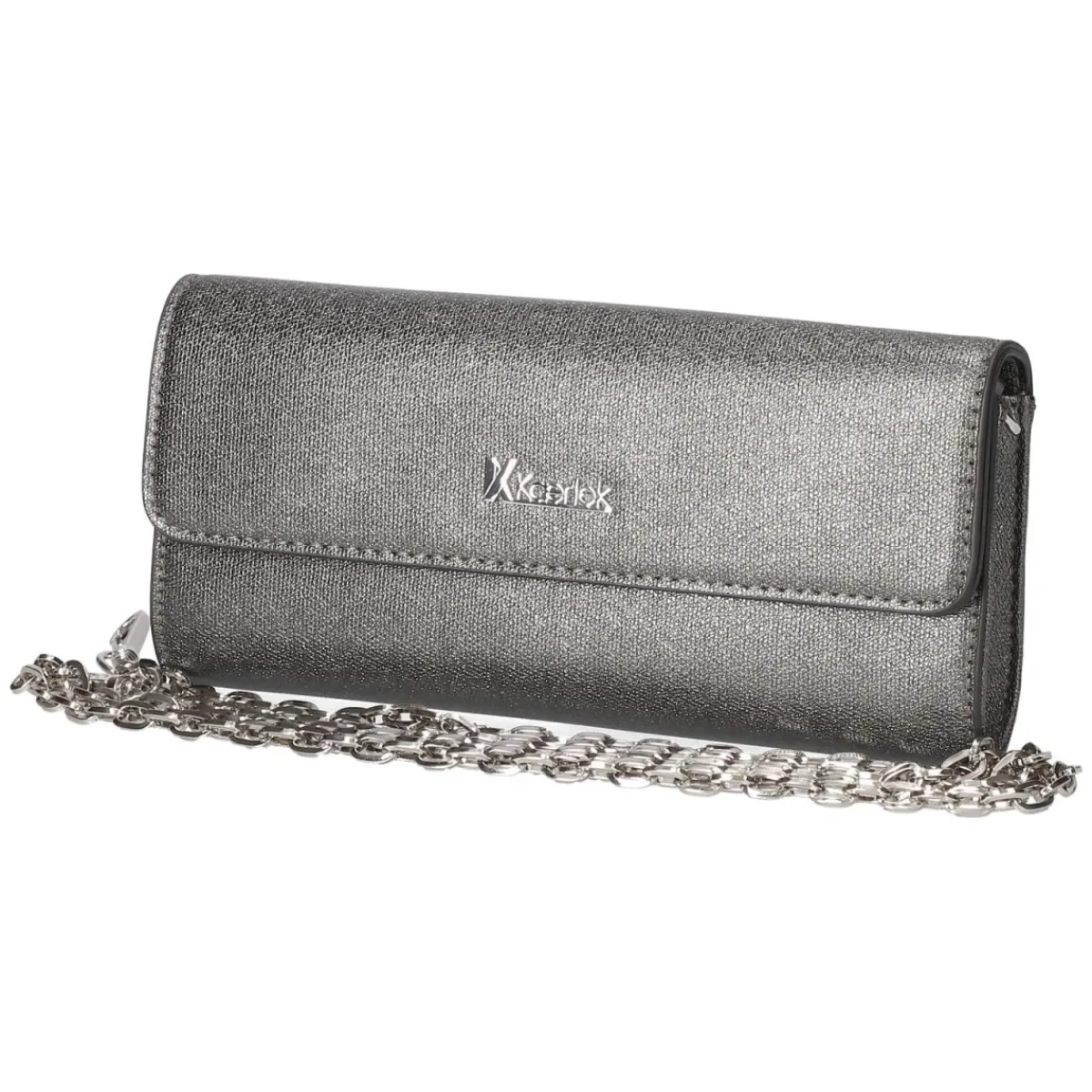 Diese silberne Abendtasche für Damen entfaltet eleganten Glanz in kompakter Form. Der klare Überschlag mit Magnetverschluss schließt zuverlässig und betont die schlanke Silhouette. Eine silberglänzende Metallkette mit ca. 130 cm Länge erlaubt das Tragen über Schulter oder quer, während markentypische Logo- und Metallelemente den edlen Auftritt abrunden. Im Hauptfach sorgen ein Steckfach sowie vier Kartenfächer für geordnete Essentials, sodass ein separates Portemonnaie oft überflüssig wird. Mit Maßen von ca. 11 x 23 x 3 cm und etwa 0,8 Litern Volumen finden Smartphone, Schlüssel und Lippenstift mühelos Platz. Die metallische Farbe reflektiert das Licht subtil und verleiht abendlichen Looks eine luxuriöse Note. Modetipp: Zur schwarzen Slipdress-Silhouette und filigranen Sandaletten entsteht ein zeitloser Red-Carpet-Effekt; tagsüber setzt die Tasche zum Oversize-Blazer einen glamourösen Akzent.