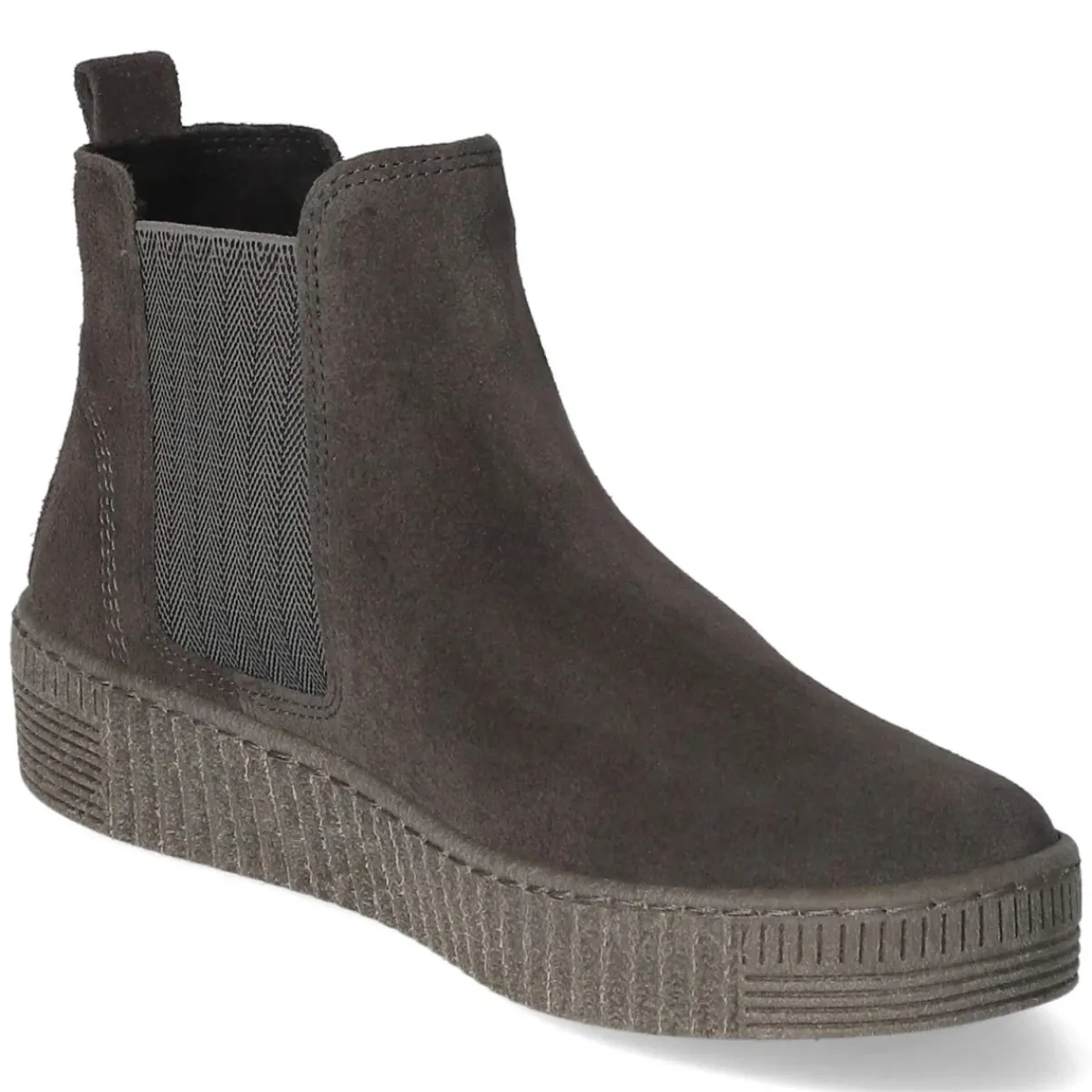 Die Chelsea Boots von Gabor in edlem Grau verbinden zeitloses Design mit funktionalem Komfort. Weiches Rauleder und die runde Spitze sorgen für eine angenehme Passform, während das langlebige Echtleder den Alltag souverän meistert. Dank zwei seitlicher Elastikeinsätze und Anziehlasche gelingt das Hineinschlüpfen mühelos, der verstärkte Fersenbereich gibt Halt. Ein leichtes Futter wärmt an kühlen Tagen, die Lederdecksohle schmeichelt dem Fuß, und das herausnehmbare Wechselfußbett eröffnet individuelle Einlagenlösungen. Die rutschfeste Laufsohle gibt verlässlichen Grip, die Passform fällt normal aus, und das dezente Grau bietet hervorragende Kombinationsmöglichkeiten von casual bis chic. Modetipp: Mit Straight-Leg-Jeans, Rollkragen und einem strukturierten Wollmantel entsteht ein aktueller City-Look; Ton-in-Ton-Socken setzen ein ruhiges, stilvolles Finish.