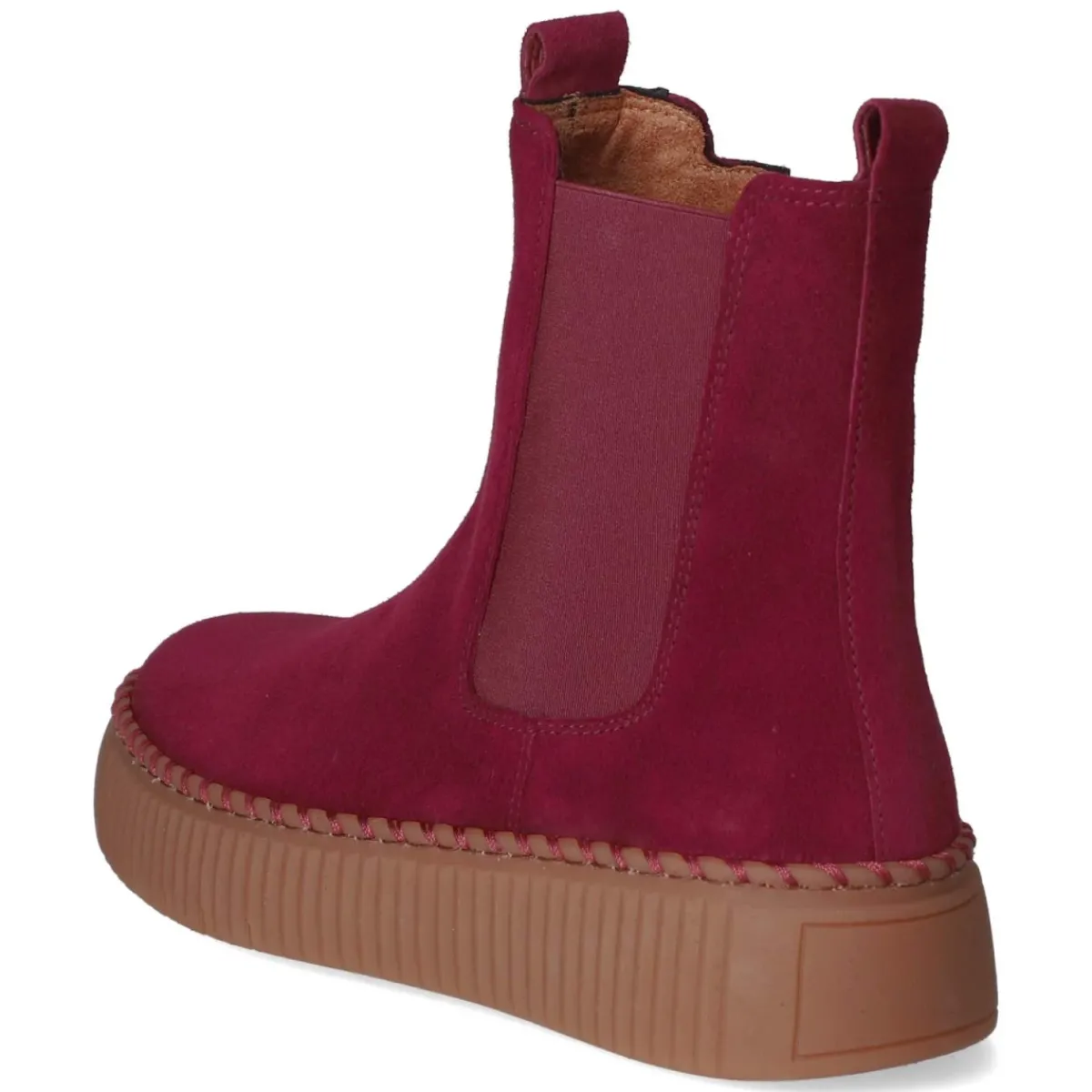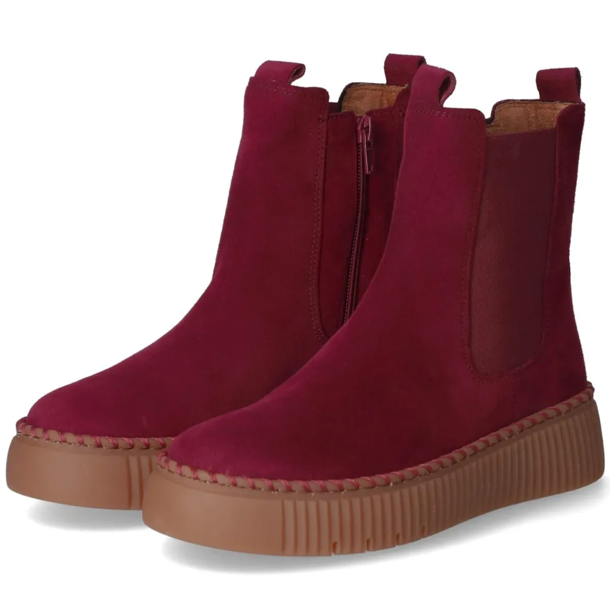 Diese Chelsea Boots von Gabor setzen in sattem Rot ein selbstbewusstes Statement und kombinieren lässige Silhouette mit Komfort. Weiches Rauleder aus atmungsaktivem Echtleder schmiegt sich angenehm an, die textile Decksohle und das komfortable Wechselfußbett unterstützen entspanntes Gehen. Der 4 cm hohe Plateau-Absatz verleiht Höhe und bleibt alltagstauglich. Ein seitlicher Elastikeinsatz, zwei Anziehlaschen und ein zusätzlicher Reißverschluss erleichtern den Einstieg, die verstärkte Ferse und die rutschfeste Laufsohle sorgen für Stabilität. Die runde Schuhspitze und die rustikalen Ziernähte am Rahmen unterstreichen den modernen Look. Fällt normal aus. Modetipp: Zu dunkler Raw-Denim und Oversize-Strick kombiniert entsteht ein urbaner Kontrast, alternativ bringt ein Midirock in Print das Rot wirkungsvoll zum Leuchten.