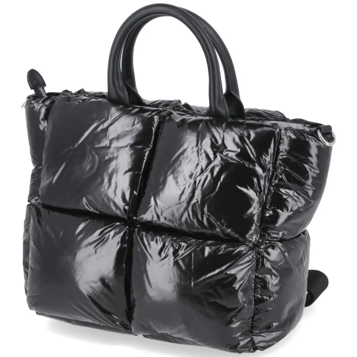 Die Handtasche VARSITY MAY zeigt in tiefem Schwarz eine ausdrucksstarke Verbindung aus puff quilted-Struktur und modernem Lackglanz, das karierte Spiel der Steppung erhält durch ein prägnantes Frontlogo eine sportiv-elegante Note. Mit ca. 25 x 28 x 13 cm und etwa 8 Litern Volumen bleibt das Format handlich und nimmt dennoch Alltagsutensilien zuverlässig auf. Zwei Henkel sorgen für Komfort im Griff, der verstellbare Tragegurt bis ca. 130 cm eröffnet lässige Crossbody- und Schulter-Optionen. Ein Reißverschluss schließt sicher, innen bringen ein RV-Fach und ein Steckfach Ordnung in Smartphone, Schlüssel und Karten. Die Damentasche überzeugt mit strukturiertem Stand, glänzt zu Office-Looks ebenso wie zu Abend-Styles. Modetipp: Den Lackeffekt mit matten Wolltexturen und einem karierten Oversize-Blazer kontrastieren – dazu Loafer mit Chunky-Sohle für einen modernen Twist.