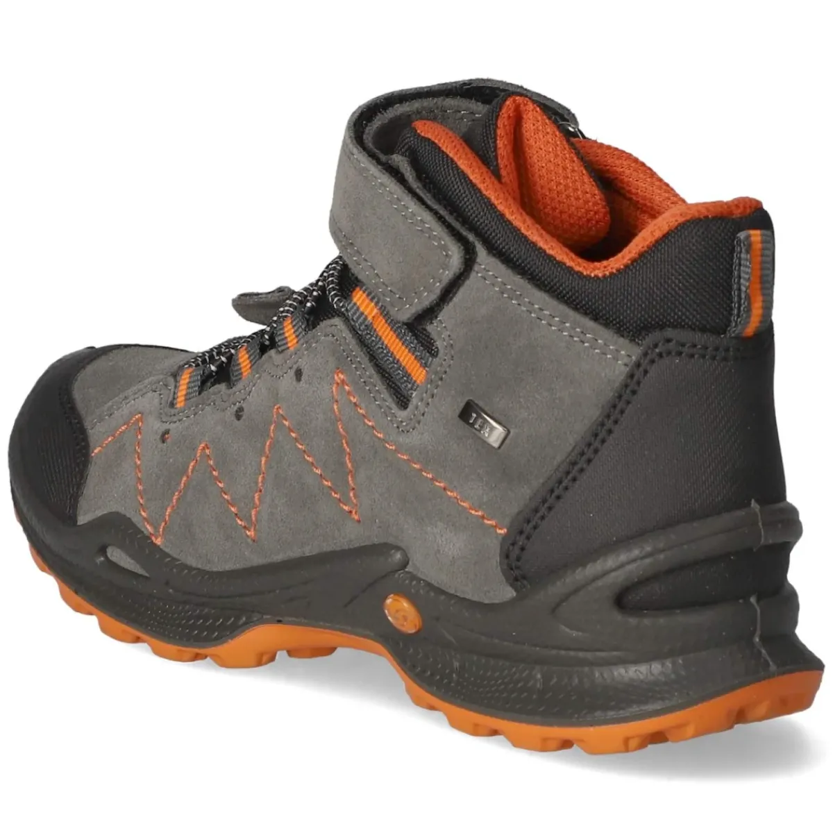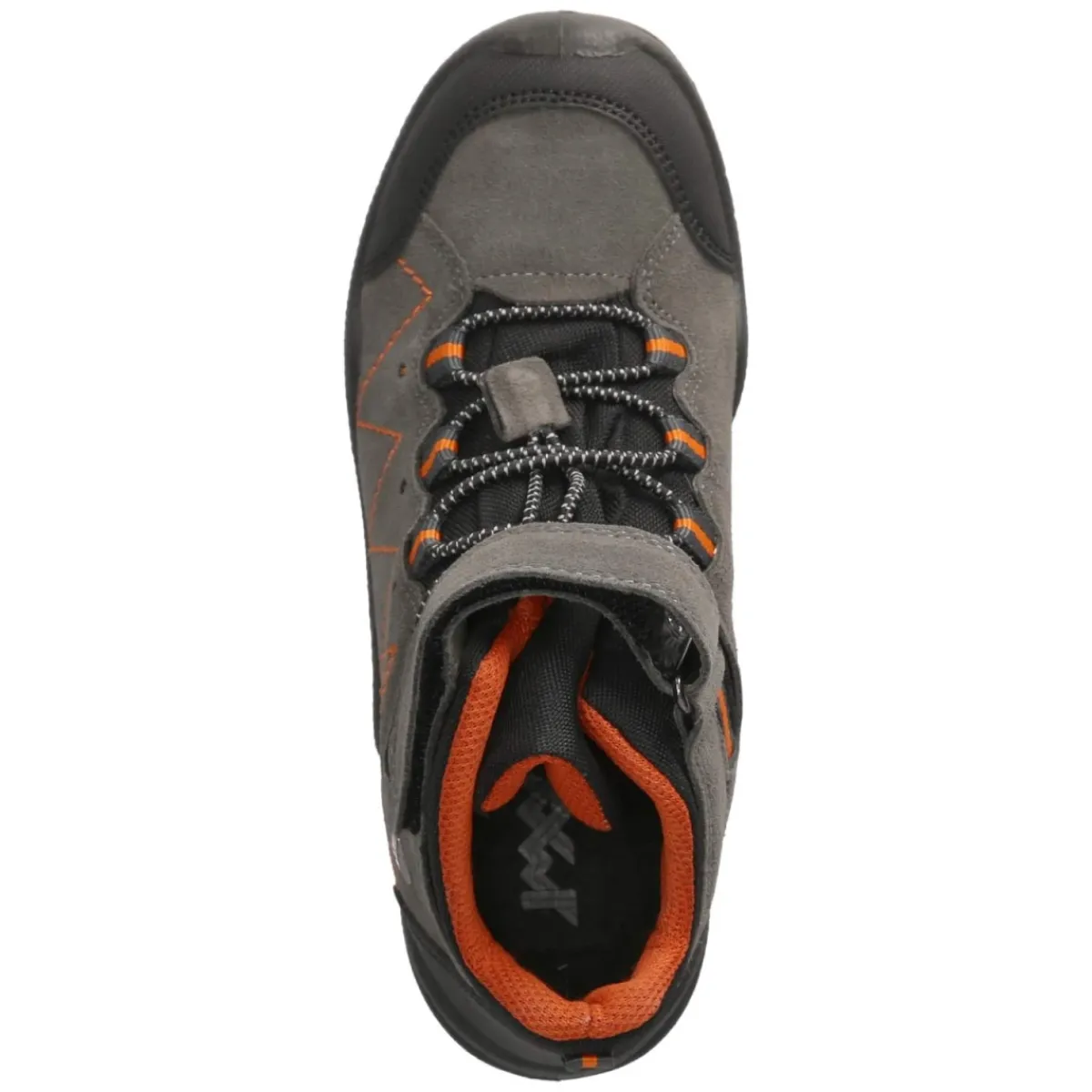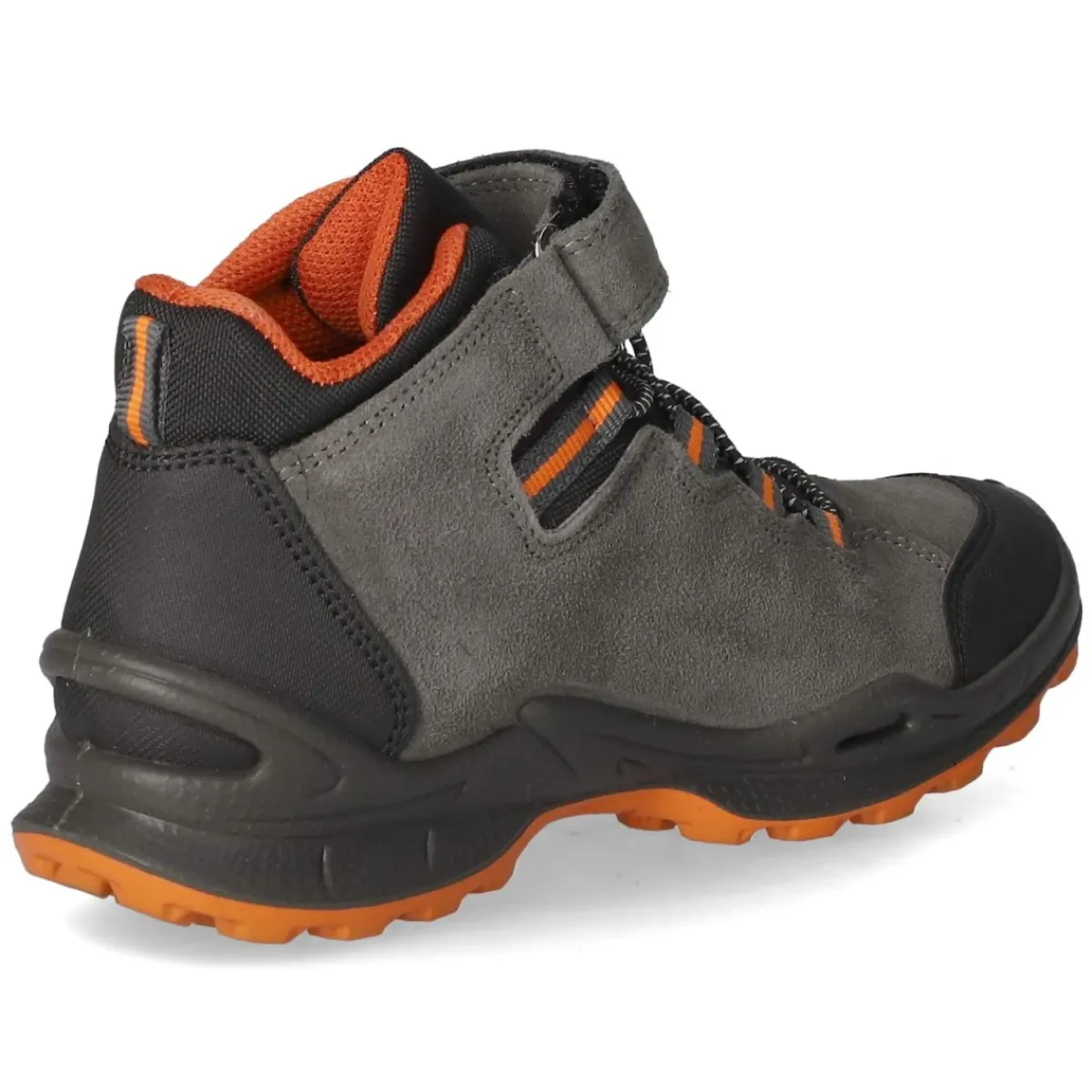 Die Klettboots von Imac sind für Kinder gemacht, die bei kaltem und nassem Wetter draußen unterwegs sind. Der wasserfeste Material-Mix aus Leder und Synthetik schützt vor Feuchtigkeit, während das weiche Warmfutter zuverlässig Wärme speichert. Dank Kombination aus Klettverschluss und elastischem Band sitzt der Schuh sicher und bleibt flexibel, die runde Spitze und der verstärkte Zehen- und Fersenbereich erhöhen den Komfort beim Spielen. Eine flexible, rutschfeste Profilsohle sorgt für Halt, die Anziehlasche erleichtert das Hineinschlüpfen. Die textile Decksohle und das Wechselfußbett bieten angenehme Dämpfung und ermöglichen individuelle Anpassung. In Grau mit orangefarbenen Akzenten wirkt das Design sportlich und vielseitig, die Passform fällt normal aus. Modetipp: Mit robuster Cargohose in Navy und einer Softshelljacke mit orangefarbenen Details entsteht ein funktionaler Outdoor-Look.