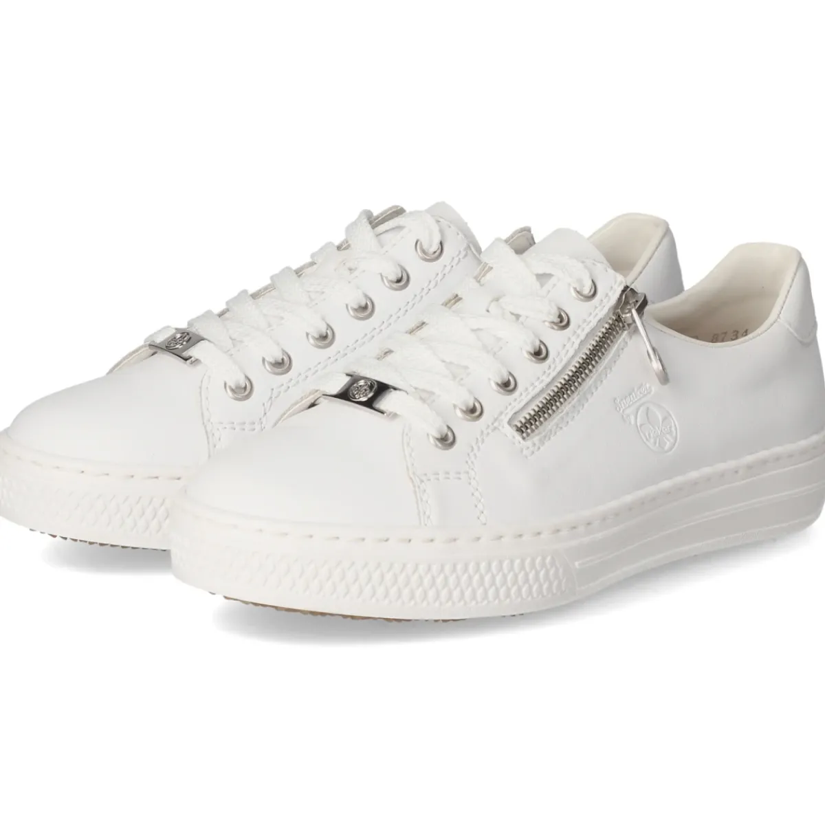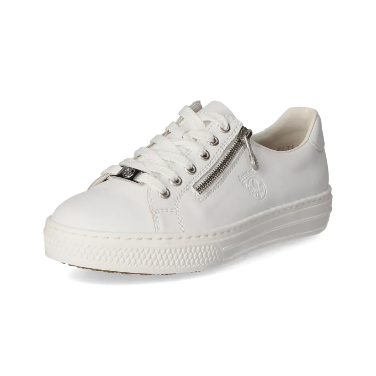 Zeitloser City-Style trifft Komfort: Der weiße Low Sneaker von Rieker aus langlebigem Echtleder überzeugt mit klarer Linienführung und rund gearbeiteter Spitze. Das Obermaterial aus Glattleder verleiht eine gepflegte Optik, während die textile Decksohle für angenehmes Fußklima sorgt. Die beste Memory-Foam-Fußbettung federt Schritte weich ab und bleibt auch an langen Tagen komfortabel. Praktisch im Alltag: Schnürsenkel für individuellen Halt und ein zusätzlicher Reißverschluss für schnelles An- und Ausziehen. Die flexible, rutschhemmende Cupsohle liefert Grip und unterstreicht den cleanen Look. Hinweis zur Passform: fällt kleiner aus, daher empfiehlt sich die Wahl einer Nummer größer. Modetipp: Mit Cropped-Jeans, weißem T-Shirt und beigem Trench entsteht ein moderner Monochrom-Look, der den puristischen Auftritt des Sneakers betont.