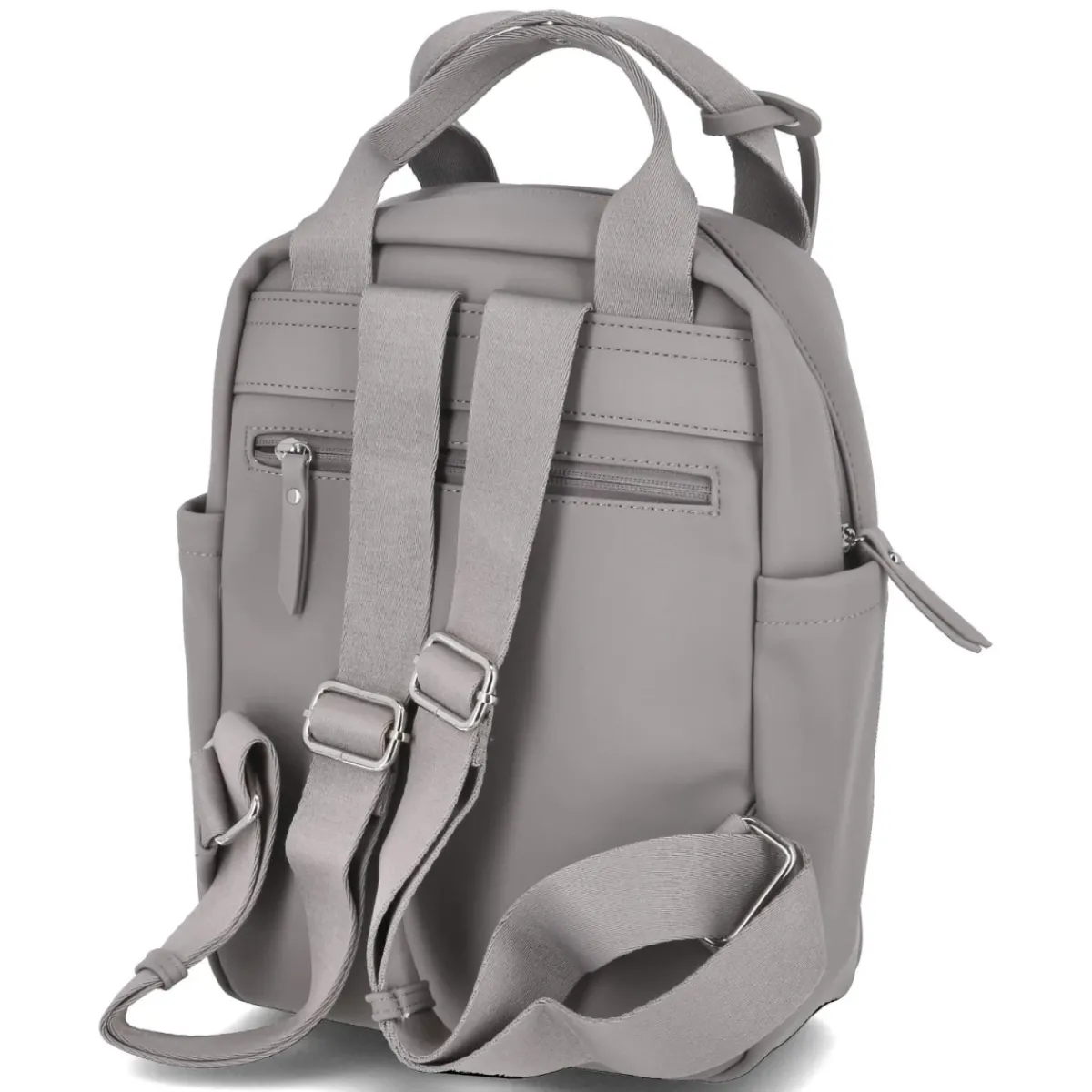 Zeitloses Design trifft auf Funktion: Dieser graue Damenrucksack bietet mit etwa 31 x 23 x 13 cm kompakte Maße bei rund 9 Litern Volumen – ideal für Arbeit, Stadtbummel oder Kurztrip. Der sichere Reißverschluss hält das Hauptfach zuverlässig geschlossen, während vorne und hinten zusätzliche Reißverschlussfächer schnellen Zugriff ermöglichen. Eine Fronttasche mit Magnet ergänzt zwei kleine Seitentaschen für Trinkflasche oder Kleinigkeiten. Innen sorgen ein Steckfach, ein Reißverschlussfach sowie ein gepolstertes Rückenfach in Laptopgröße für Ordnung. Verstellbare Tragegurte bis ca. 85 cm und ein verstärkter Boden erhöhen Komfort und Stabilität. Das dezente Grau lässt sich vielseitig kombinieren, die klare Silhouette wirkt modern und gepflegt. Modetipp: Zu monochromen Looks mit grauem Wollmantel und weißen Sneakern tragen, dazu silberne Accessoires für einen harmonischen, urbanen Auftritt.