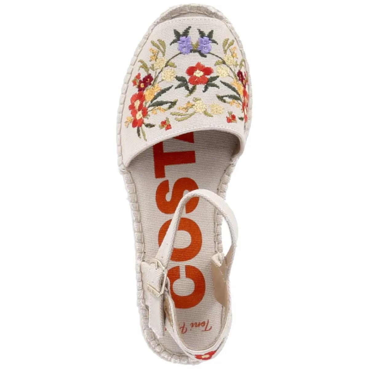 Die Sandalen GARBET von Toni Pons verbinden mediterranes Design mit alltagstauglichem Komfort. Das robuste Textilobermaterial zeigt eine farbenfrohe Blumenstickerei, die dem beigen Grundton einen frischen Akzent verleiht. Offen gestaltet und mit geflochtenem Sohlenrahmen erinnert das Modell an klassische Espadrille-Details, während die weiche Decksohle aus Textil für ein angenehmes Fußklima sorgt. Die Schnalle mit Elastikeinsatz ermöglicht ein anpassungsfähiges Tragegefühl, das sich bei jedem Schritt flexibel zeigt. Eine rutschhemmende Laufsohle schenkt sicheren Halt auf Stadtwegen und Promenaden. Der Fit fällt normal aus und macht die Wahl der gewohnten Größe unkompliziert. Ein vielseitiger Begleiter für entspannte Sommerlooks und kleine Anlässe, die dennoch nach Stil verlangen. Modetipp: Zu Midikleid in Naturtönen und einer Basttasche kombinieren, dazu filigraner Goldschmuck für einen fein abgerundeten Auftritt.