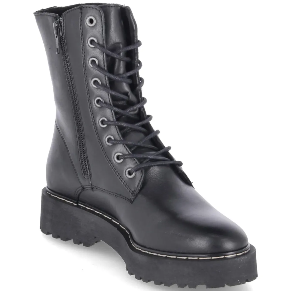 Der Schnürboot von Fräulein Frida verbindet zeitloses Design mit funktionalem Komfort. Glattes, langlebiges Echtleder in klassischem Schwarz verleiht urbanen Chic, während die runde Spitze und der 3,5 cm hohe Blockabsatz für eine ausgewogene Silhouette sorgen. Schnürsenkel geben variablen Halt, der zusätzliche Reißverschluss erleichtert das An- und Ausziehen im Alltag. Ein leichtes, weiches Fleecefutter wärmt an kühlen Tagen, die textile, weich gepolsterte Decksohle unterstützt angenehmes Tragen von morgens bis abends. Die verstärkte Ferse stabilisiert Schritt für Schritt, die kräftig profilierte, rutschfeste Laufsohle bietet verlässliche Traktion auf nassem Pflaster. Der Boot fällt normal aus und passt sich vertraut an. Modetipp: Zu Cropped-Jeans und Wollmantel entsteht ein klarer City-Look, mit Feinstrickkleid und blickdichter Strumpfhose wirkt der Boot feminin und modern.