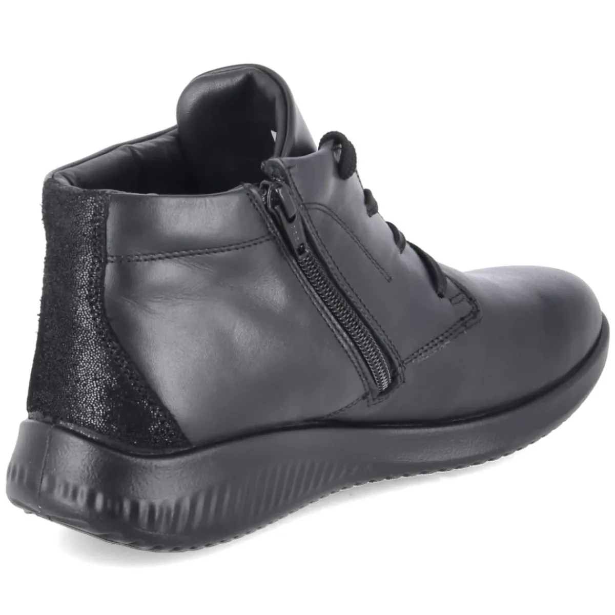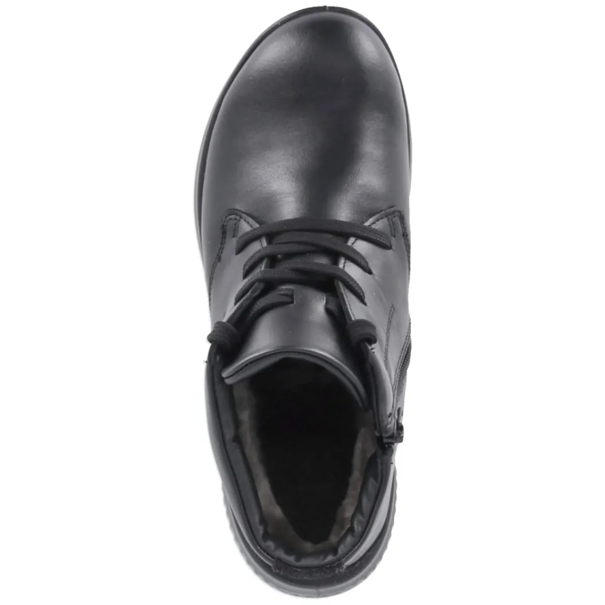 Der Beliana Schnürboots präsentiert sich in tiefschwarzem Glattleder und verbindet robuste Alltagstauglichkeit mit weiblicher Silhouette. Das langlebige Echtleder umschließt eine runde Spitze und ein wärmendes Lammfellfutter, das an kalten Tagen zuverlässig isoliert. Für bequemen Einstieg sorgt die Kombination aus Schnürsenkeln und seitlichem Reißverschluss, der leicht gepolsterte Schaft schmiegt sich angenehm an. Eine flexible, rutschfeste Laufsohle und die verstärkte Ferse geben Halt auf winterlichen Wegen. Im Inneren überzeugt die textile Decksohle mit Wechselfußbett, ideal für individuelle Einlagen. Der Stiefel fällt normal aus und bietet damit unkomplizierte Größenwahl. In klassischem Schwarz zeigt er vielfältige, gute Kombinationsmöglichkeiten vom Strickkleid bis zur Denim. Modetipp: Mit Wollmantel, groben Socken, Midi-Rock aus Lederoptik und tonalem Gürtel entsteht ein urbaner Look mit klarer Linie.