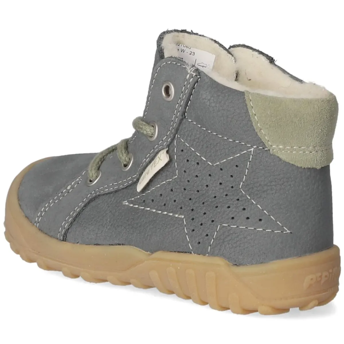 Der Schnürboot DENNY von Pepino begleitet kleine Entdecker zuverlässig durch kalte Tage: Weiches Warmfutter bewahrt wohlige Wärme, während die TEX-Ausstattung leichten Nässe- und Windschutz bietet. Atmungsaktives Rauleder in sattem Blau und die charmante Zierstern-Lochung sorgen für einen wertigen, kindgerechten Look. Die runde Spitze schafft Zehenfreiheit, der gepolsterte Einstieg liegt angenehm am Knöchel. Dank Schnürung sitzt der Schuh sicher und lässt sich individuell anpassen. Eine flexible, rutschfeste Laufsohle unterstützt natürliche Abrollbewegungen; die textile Decksohle mit Wechselfußbett ermöglicht frisches Tragegefühl und bei Bedarf den Einsatz eigener Einlagen. Fällt normal aus und ist damit unkompliziert in der Größe. Modetipp: Mit Thermojeans, Stricksocken und einem Parka in Marine entsteht ein harmonisches Winteroutfit.