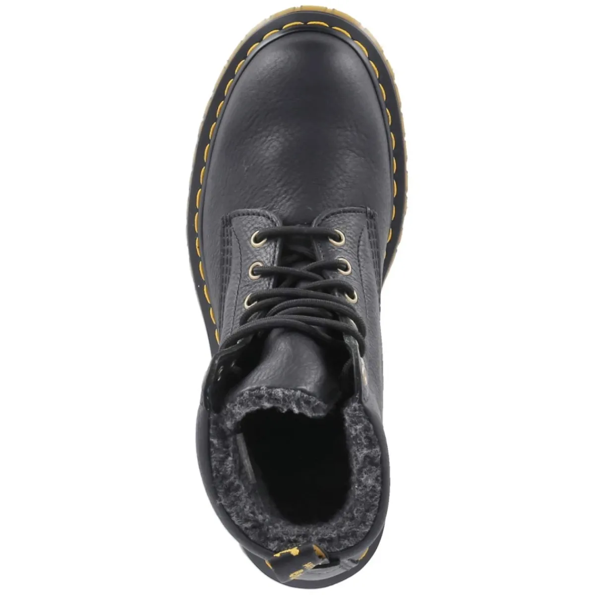 Markante Präsenz und bewährte Qualität: Die schwarzen Dr. Martens Schnürboots vereinen ein klassisches Design mit robustem Charakter. Glattes, langlebiges Echtleder formt die ikonische Silhouette mit runder Spitze, während die rutschhemmende Laufsohle sicheren Tritt auf Asphalt und nassem Pflaster unterstützt. Der Blockabsatz mit 3,5 cm bietet Stabilität und eine dezente Erhöhung, die Textildecksohle ergänzt den Komfort im Alltag. Der schmale Schnitt unterstreicht die klare Linienführung; das Modell fällt insgesamt schmaler aus. Die Schnürung ermöglicht eine präzise Anpassung und sorgt für festen Halt. Modetipp: Besonders stimmig zu aufgekrempelten Chinos, feinem Strick und einem strukturierten Wollmantel, um den kontrastierenden Mix aus Roughness und Eleganz zu betonen.