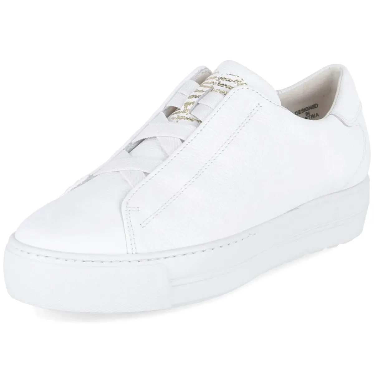 Der Slip-On-Sneaker von Paul Green vereint klare Linien mit durchdachter Funktion. Glattes, langlebiges Echtleder in Reinweiß und eine rund gearbeitete Kappe sorgen für einen zeitlosen Look, während die 3 cm hohe Plateau-Sohle subtil streckt und angenehm dämpft. Dank Elastikband in Schnüroptik gelingt der Einstieg mühelos, die Zunge mit leichtem Goldprint setzt einen feinen Akzent. Eine Lederdecksohle unterstützt das angenehme Klima im Schuh, die rutschhemmende Laufsohle bietet zuverlässigen Halt. Das schlichte Design eröffnet vielseitige Kombinationsmöglichkeiten, fällt zudem normal aus und passt so unkompliziert in die Garderobe. Modetipp: Besonders modern wirkt der Sneaker zu cropped Mom-Jeans, hellem Strick und einem strukturierten Blazer in Beige – feiner Goldschmuck greift den dezenten Print elegant auf.