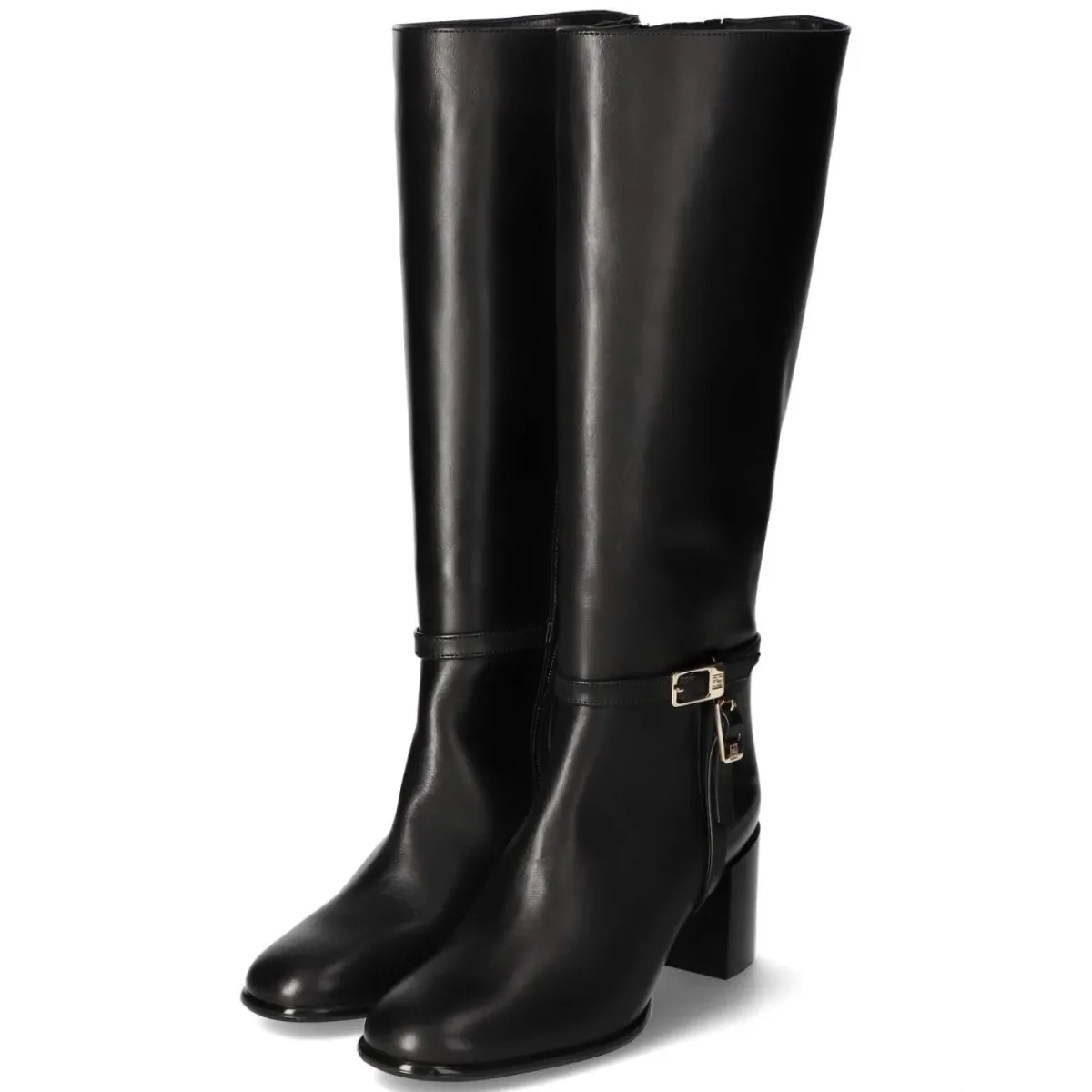 Der Damenstiefel von Högl setzt in tiefem Schwarz auf zeitlose Eleganz und verlässlichen Komfort. Glattes, atmungsaktives Echtleder und eine lederne Decksohle umschließen den Fuß angenehm, während das leichte Futter an kühlen Tagen wärmt. Der 7 cm hohe Blockabsatz streckt die Silhouette und bleibt dank breiter Auflagefläche stabil. Eine runde Spitze sorgt für bequemen Zehenraum, der praktische Reißverschlusseinstieg erleichtert das An- und Ausziehen. Zwei Zierriemen mit goldfarbenen Schnallen akzentuieren den klassischen Look, der Schaft misst ca. 43 cm in der Höhe und ca. 36 cm im Umfang. Die flexible, rutschhemmende Laufsohle bietet Trittsicherheit auf urbanem Terrain. Das Modell fällt normal aus und empfiehlt sich als vielseitiger Begleiter von Büro bis Dinner. Modetipp: Zu Midirock in A-Linie und Wollmantel tragen, alternativ zu schmaler Denim, die locker in den Schaft gesteckt wird.