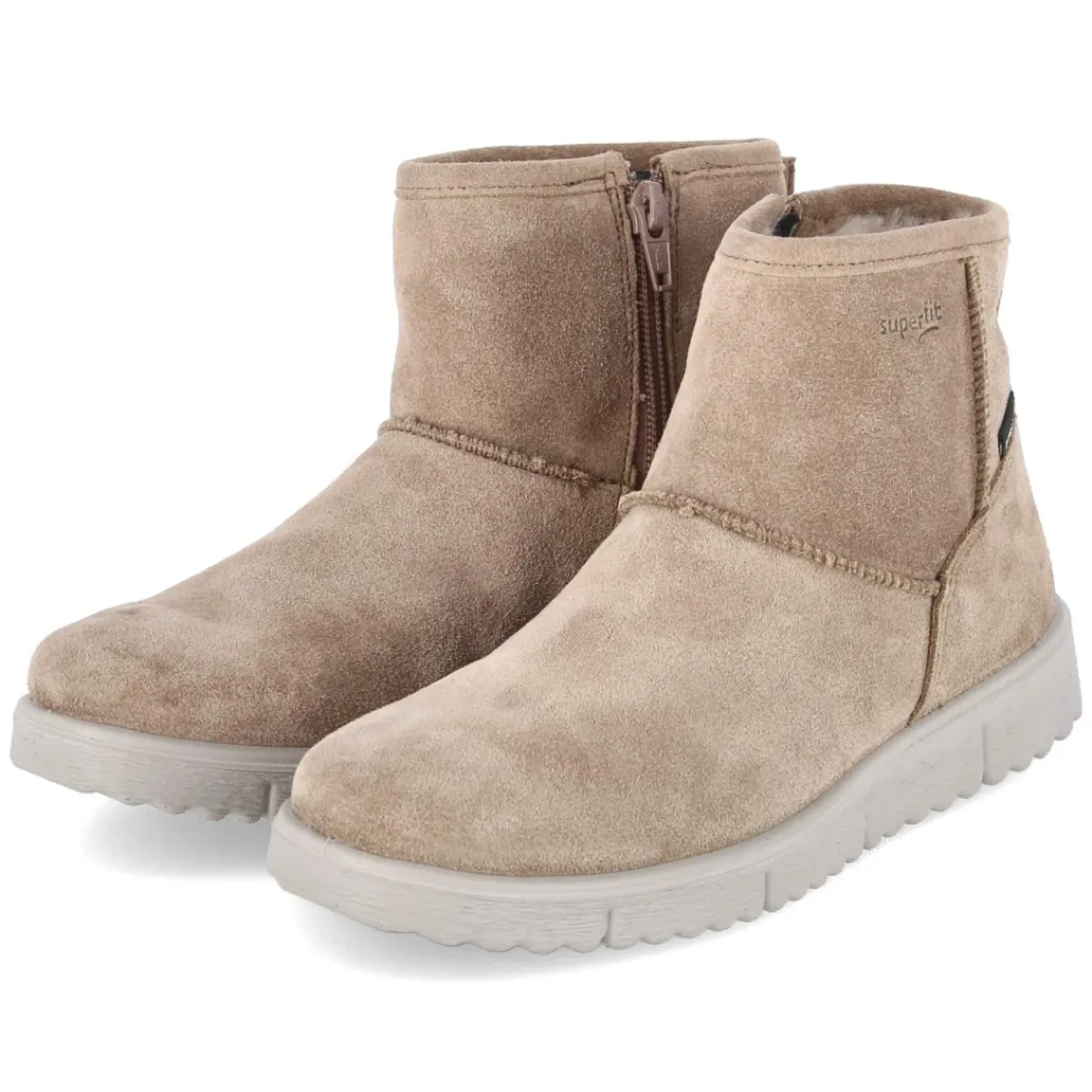 Winterboots LORA von Superfit vereinen kindgerechten Komfort und verlässlichen Wetterschutz in einem zeitlosen Look. Das braune Rauleder mit groben Nähten und nativem Design wirkt robust und natürlich, die runde Spitze bietet genügend Zehenfreiheit. Ein wasserfestes Obermaterial mit Sympatex hält Nässe souverän ab, während Warmfutter und textile Decksohle für kuschelige Geborgenheit an kalten Tagen sorgen. Dank Reißverschluss und Anziehlasche gelingt der Einstieg im Alltag schnell und mühelos. Die sehr flexible, rutschfeste Laufsohle unterstützt sicheren Halt auf winterlichen Wegen. Mit normal ausfallender Passform ideal für den täglichen Einsatz von Schule bis Spielplatz. Modetipp: Zu Erdtönen kombiniert, etwa mit Wollparka, Cordhose und grob gestrickter Mütze, entfaltet das Modell seine natürliche Ausstrahlung besonders stimmig.