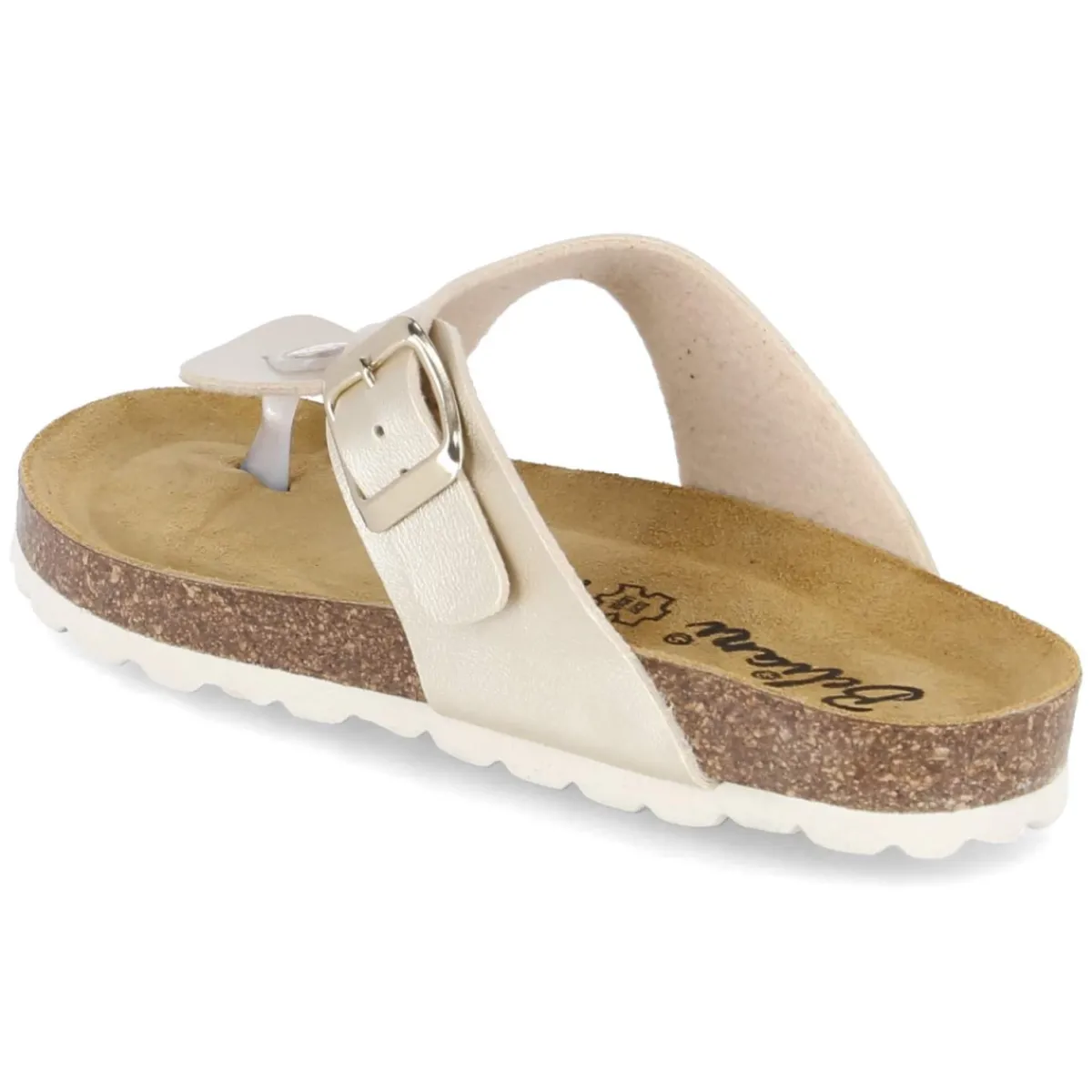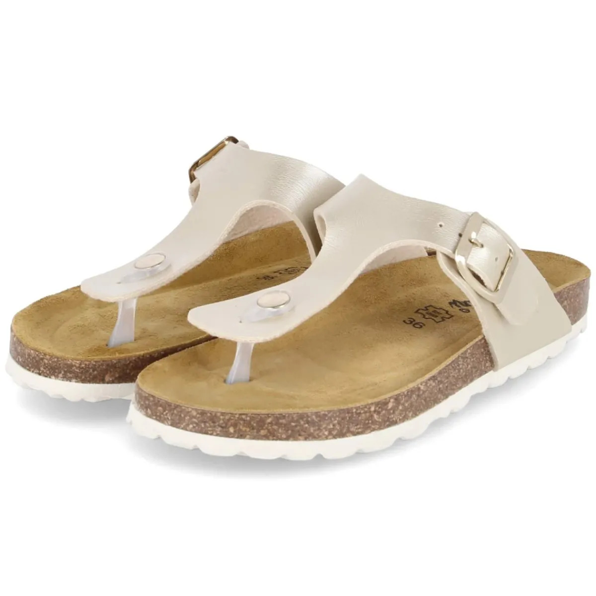 Ein sommerlicher Zehentrenner von Beliani, der elegante Optik mit kindgerechtem Komfort verbindet. Das beige Obermaterial aus pflegeleichtem Kunstleder zeigt einen dezenten metallischen Glanz und wird von einem Verschlussriemen mit Schnalle sicher gehalten. Die gepolsterte, vorgeformte Lederdecksohle schmiegt sich hautfreundlich an den Fuß und unterstützt entspanntes Gehen, während die flexible Laufsohle zuverlässigen Halt auf verschiedenen Untergründen bietet. Die offene Schuhspitze sorgt für angenehme Belüftung an warmen Tagen, der Größenhinweis fällt normal aus und erleichtert die Auswahl. So wird der Allrounder schnell zum Liebling für Spielplatz, Stadtbummel und Familienfeiern. Modetipp: Zu leichten Sommerkleidern, Denim-Shorts und einem Feinstrick-Cardigan entsteht ein stimmiger Look, der den feinen Metallic-Effekt harmonisch unterstreicht.