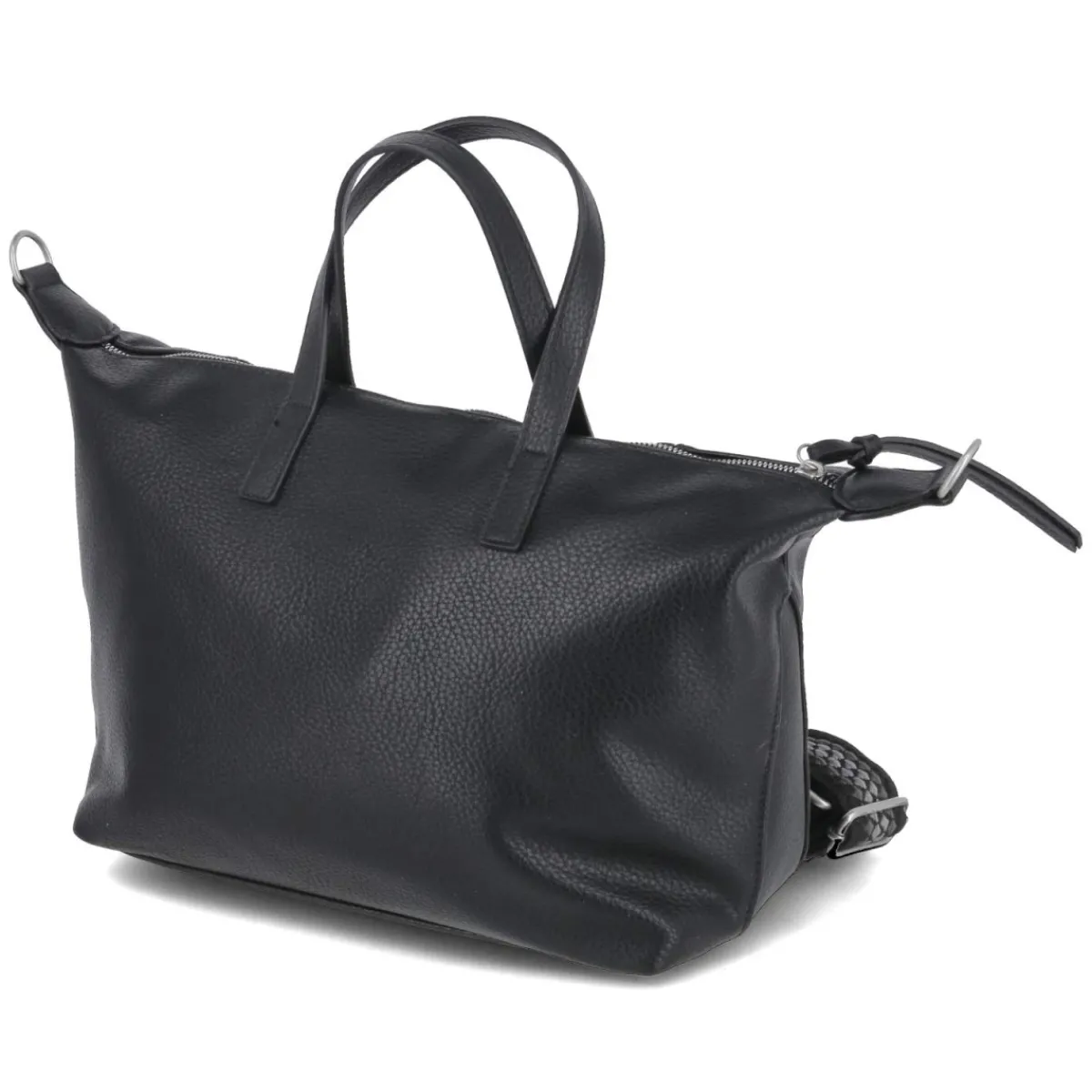 Diese Handtasche in Schwarz setzt auf klare Linien und durchdachte Funktion. Das RV-Hauptfach sichert den Inhalt, während ein innenliegendes Steckfach und ein Reißverschlussfach Ordnung schaffen. Mit Maßen von ca. 21 x 32 x 20 cm und einem Volumen von rund 10 Litern bietet das Modell ausreichend Platz für Alltag und Office. Zwei feste Tragehenkel und ein verstellbarer, abnehmbarer Schultergurt von ca. 150 cm ermöglichen flexibles Tragen von Hand bis Crossbody. Ein verstärkter Boden sorgt dafür, dass die Tasche stabil steht, das dezente Frontlogo rundet den eleganten Look ab. Das Design ist auf Damen zugeschnitten und verbindet Stil mit Alltagstauglichkeit. Modetipp: Zur monochromen Kombination aus schwarzem Blazer, weiter Wollhose und edlen Loafern wirkt die Tasche besonders modern, alternativ als ruhiger Gegenpol zu einem leichten Satinrock und Stricktop einsetzen.