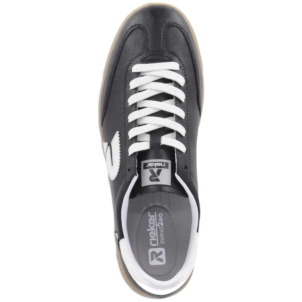 Dieser Rieker Low Sneaker verbindet klare Linien mit funktionaler Ausstattung und überzeugt in zeitlosem Schwarz mit feinen weißen Akzenten. Glattes Echtleder verleiht dem Obermaterial eine wertige Haptik, während die runde Schuhspitze und die klassische Schnürung eine sportive, vielseitige Silhouette formen. Ein komfortables Wechselfußbett auf textiler Decksohle sorgt für angenehmes Fußklima und ermöglicht eine individuelle Anpassung, die auch an langen Tagen Tragefreude bringt. Der Einstieg ist leicht gepolstert, Zehen- und Fersenbereich sind dezent verstärkt, was Halt gibt, ohne aufzutragen. Die flexible Cupsohle bietet rutschhemmenden Grip im Alltag und macht jede Bewegung geschmeidig mit. Größenhinweis: fällt normal aus. Modetipp: Besonders stimmig zu schmalen Chinos oder dunklem Denim, ergänzt von einem cleanen Sweatshirt oder einer leichten Lederjacke für einen urbanen Look.