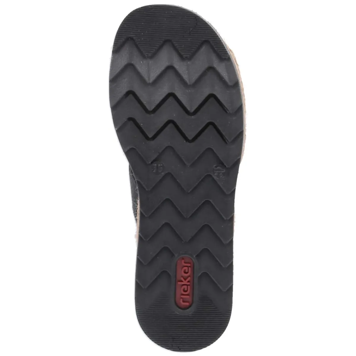 Diese Damen-Pantoletten von Rieker vereinen sommerliche Leichtigkeit mit verlässlichem Komfort. Das schwarze Textil-Obermaterial zeigt einen breiten Riemen in markanter Flechtoptik, der dem minimalistischen Design Struktur verleiht und sicheren Halt gibt. Die offene Schuhspitze sorgt für luftiges Tragegefühl, während die weiche Textil-Decksohle und das gepolsterte Fußbett entspannte Schritte über den ganzen Tag ermöglichen. Eine rutschhemmende Laufsohle mit leichtem Keil entlastet beim Gehen und verleiht eine dezente Silhouette. Der gestreifte Sohlenrahmen in Korkoptik setzt einen natürlichen Akzent, der zu zahlreichen Looks passt. Dank pflegeleichter Oberfläche und guter Kombinationsmöglichkeiten ist das Modell ein unkomplizierter Begleiter und fällt in der Größe normal aus. Modetipp: Mit Leinenhose, gestreiftem Shirt und Basttasche entsteht ein moderner City-Look; abends ergänzt ein Midikleid in Creme die elegante Note.