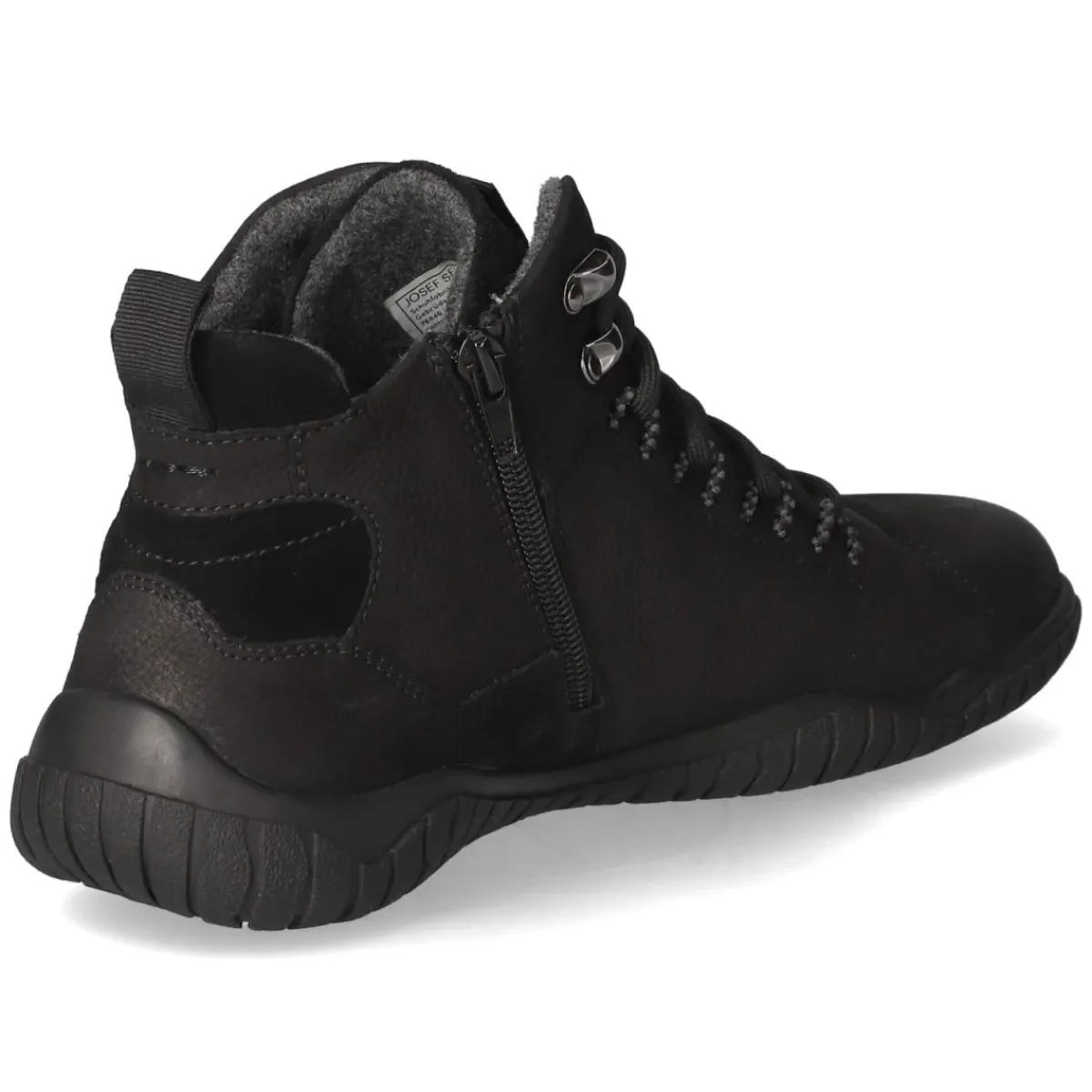 Schnürschuhe WALLACE 03 von Josef Seibel vereinen sportliche Eleganz mit alltagstauglichem Komfort. Das schwarze Rauleder zeigt eine dezente Struktur und wirkt durch fein gelochte Partien besonders wertig. Atmungsaktives Echtleder unterstützt ein ausgeglichenes Fußklima, die textile Decksohle fühlt sich angenehm an. Das komfortable Wechselfußbett lässt sich bei Bedarf austauschen, ideal für eigene Einlagen. Für schnelles An- und Ausziehen sorgt der zusätzliche Reißverschluss, während Schnürsenkel die Passform präzise regulieren. Eine runde Spitze, verstärkte Ferse und Anziehlasche erhöhen den Tragekomfort. Die flexible, rutschfeste Laufsohle bietet Halt auf urbanen Wegen. Die Passform fällt normal aus. Modetipp: Zu dunkler Denim, Feinstrick und einem cleanen Mantel entsteht ein moderner Smart-Casual-Look.