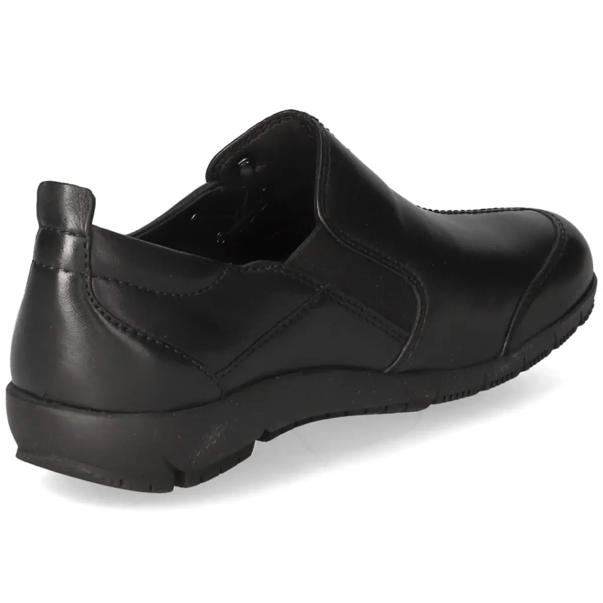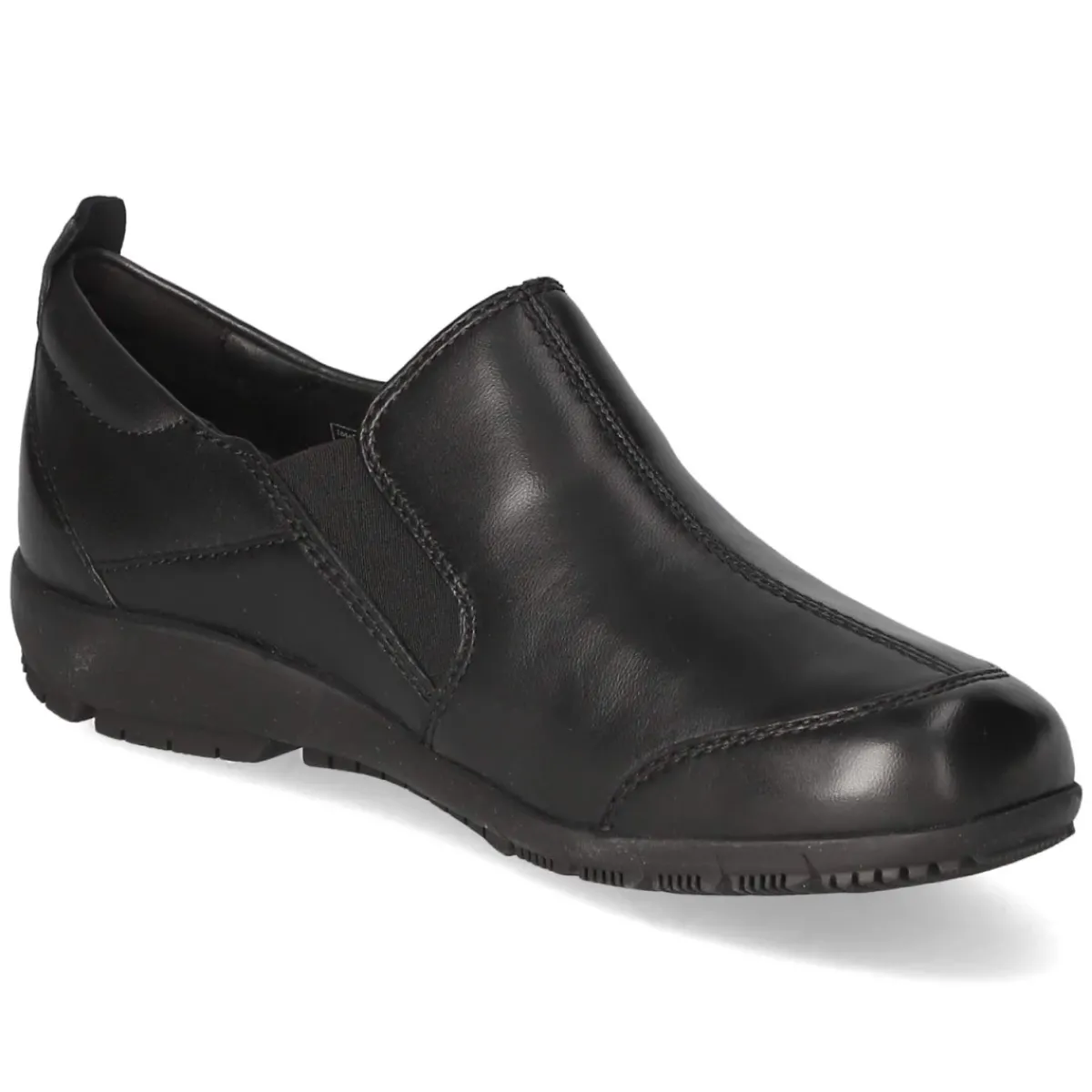 Der Slipper CHARLOTTE 17 von Josef Seibel vereint lässige Eleganz mit funktionalem Komfort. Schwarzes Glattleder und die runde Schuhspitze formen eine zeitlose Silhouette, die dank atmungsaktivem Echtleder angenehm temperiert bleibt. Die hautfreundliche Lederdecksohle und das weich gepolsterte Wechselfußbett bieten ein sanftes Auftrittsgefühl, während der elastische Einsatz am Schaft den Einstieg erleichtert und für sicheren Halt sorgt. Verstärkte Zehen- und Fersenbereiche erhöhen die Formstabilität, die flexible, rutschhemmende Laufsohle sorgt für Grip im Alltag. Ohne Verschluss konzipiert und in normaler Größe ausfallend, wird der Slipper schnell zum verlässlichen Begleiter für Büro und Freizeit. Modetipp: Mit Cropped-Culotte in Wolloptik und feiner Seidenbluse entsteht ein moderner, reduzierter Look mit eleganter Note.