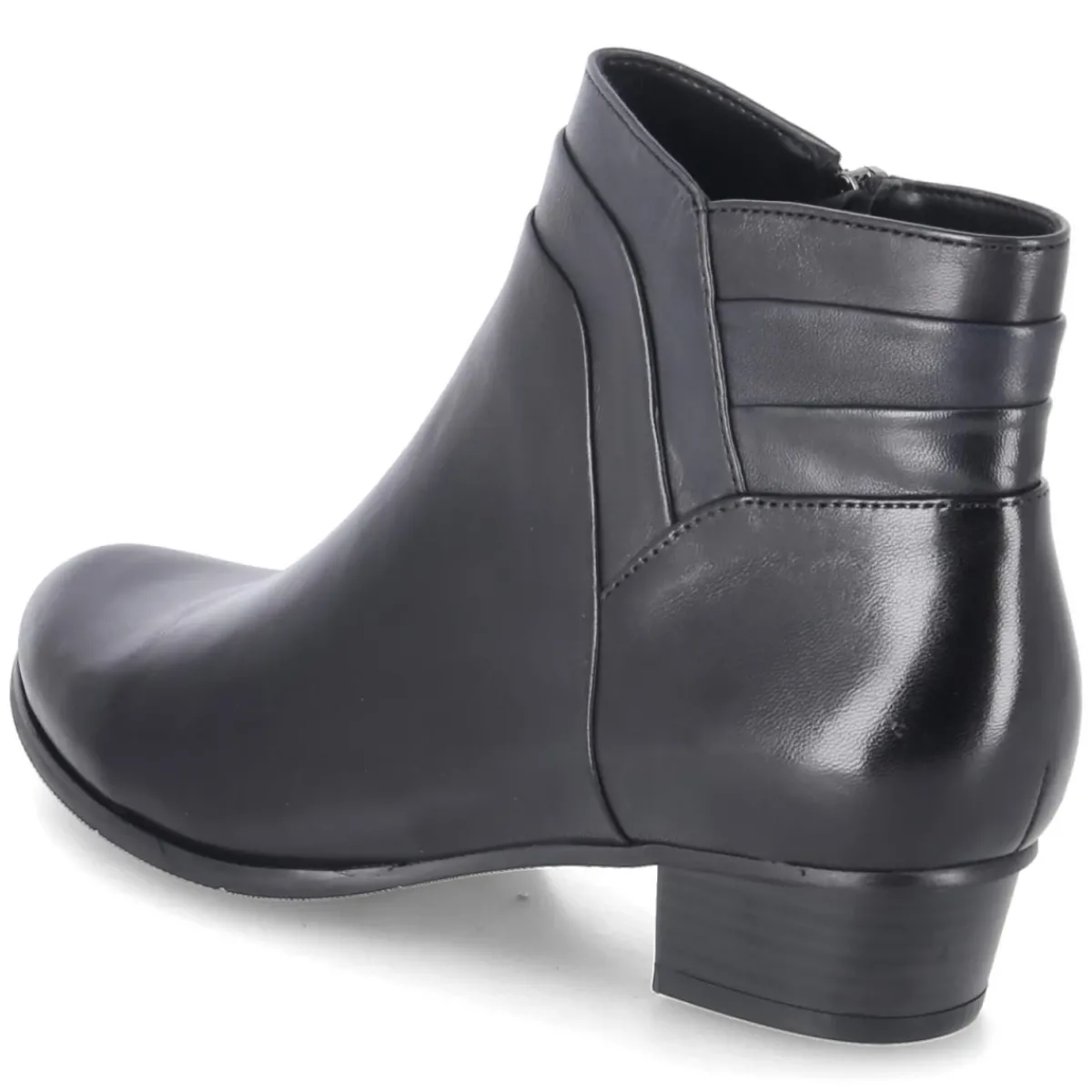 Die Damen-Stiefeletten von Kaerlek verbinden klare Linien mit funktionalen Details. Glattes, langlebiges Echtleder in tiefem Schwarz trifft auf eine runde Schuhspitze und einen stabilen 4-cm-Blockabsatz mit dezent kubanischer Anmutung. Der seitliche Reißverschluss erleichtert das Anziehen, während der Schaft mit überlagernden Elementen dem klassischen Design eine moderne Tiefe verleiht. Innen sorgt ein leichtes Fleecefutter für behagliche Wärme an kühlen Tagen, die Leder-Textil-Decksohle unterstützt ein angenehmes Fußklima. Die flexible, griffige Laufsohle gibt Halt auf urbanem Terrain, das relaxtes Leichtgewicht macht jeden Schritt mühelos. Der Fit fällt normal aus und bleibt den ganzen Tag komfortabel. Modetipp: Mit Midirock aus Satin und einem strukturierten Wollblazer entsteht ein eleganter Kontrast; alternativ verleiht eine Cropped-Denim und ein Kaschmirpullover dem Look lässige Klasse.