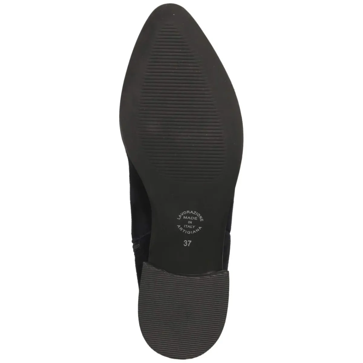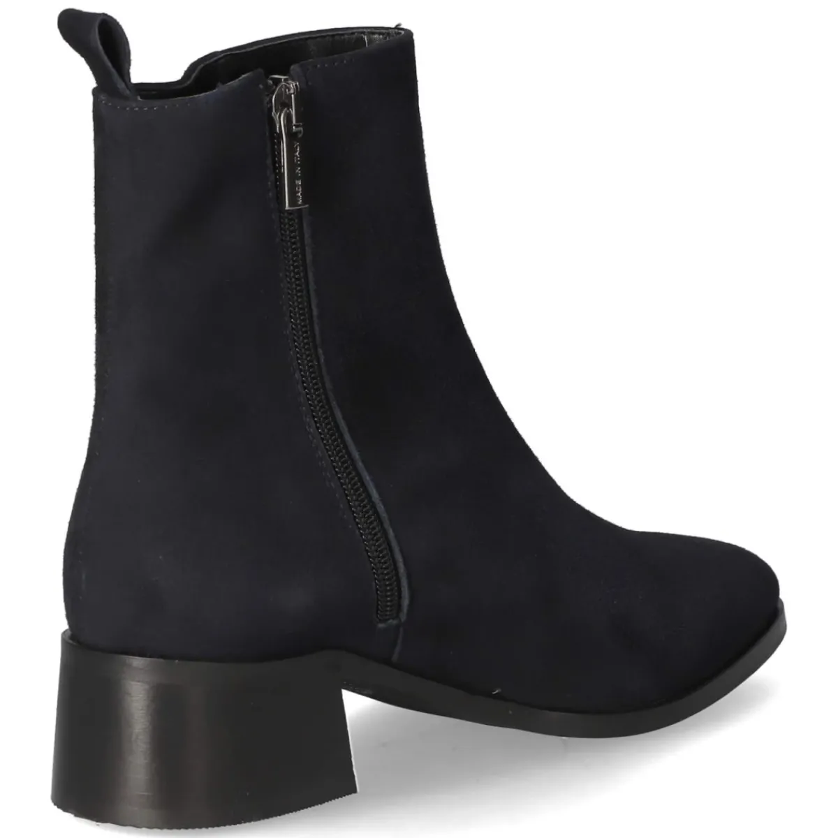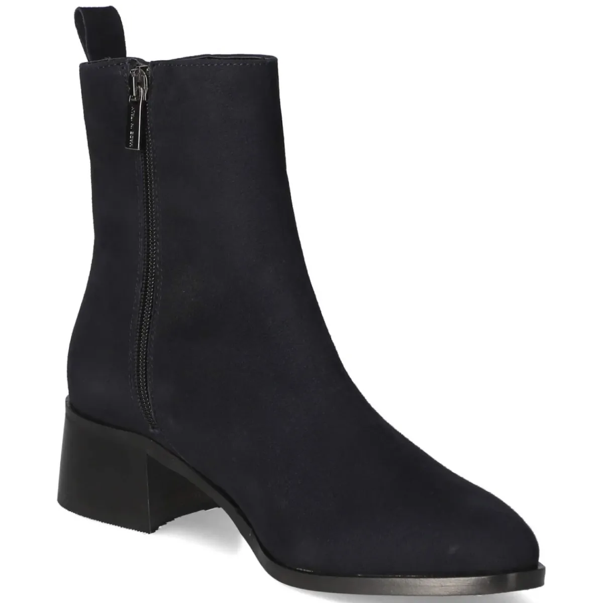 Die Kaerlek Stiefeletten setzen auf edles Rauleder und eine klare, zeitlose Silhouette. Ein seitlicher Reißverschluss erleichtert den Einstieg, die Anziehlasche unterstützt zusätzlich. Das gepolsterte Fußbett und die flexible, rutschfeste Laufsohle sorgen für komfortable Schritte im Alltag. Mit rund zulaufender Spitze und stabilem 3,5‑cm-Blockabsatz entsteht eine elegante Optik, die sowohl im Büro als auch in der Freizeit überzeugt. Die Decksohle aus Leder schmeichelt dem Fuß, während die langlebige Echtlederverarbeitung Wertigkeit ausstrahlt. Die blaue Farbe kann je nach Licht als Dunkelblau bis nahezu Schwarz wirken und lässt sich vielseitig kombinieren. Fällt normal aus. Modetipp: Zu Cropped-Jeans und langem Wollmantel in Navy tragen und mit silbernen Schmuckakzenten einen modernen Ton-in-Ton-Look unterstreichen.