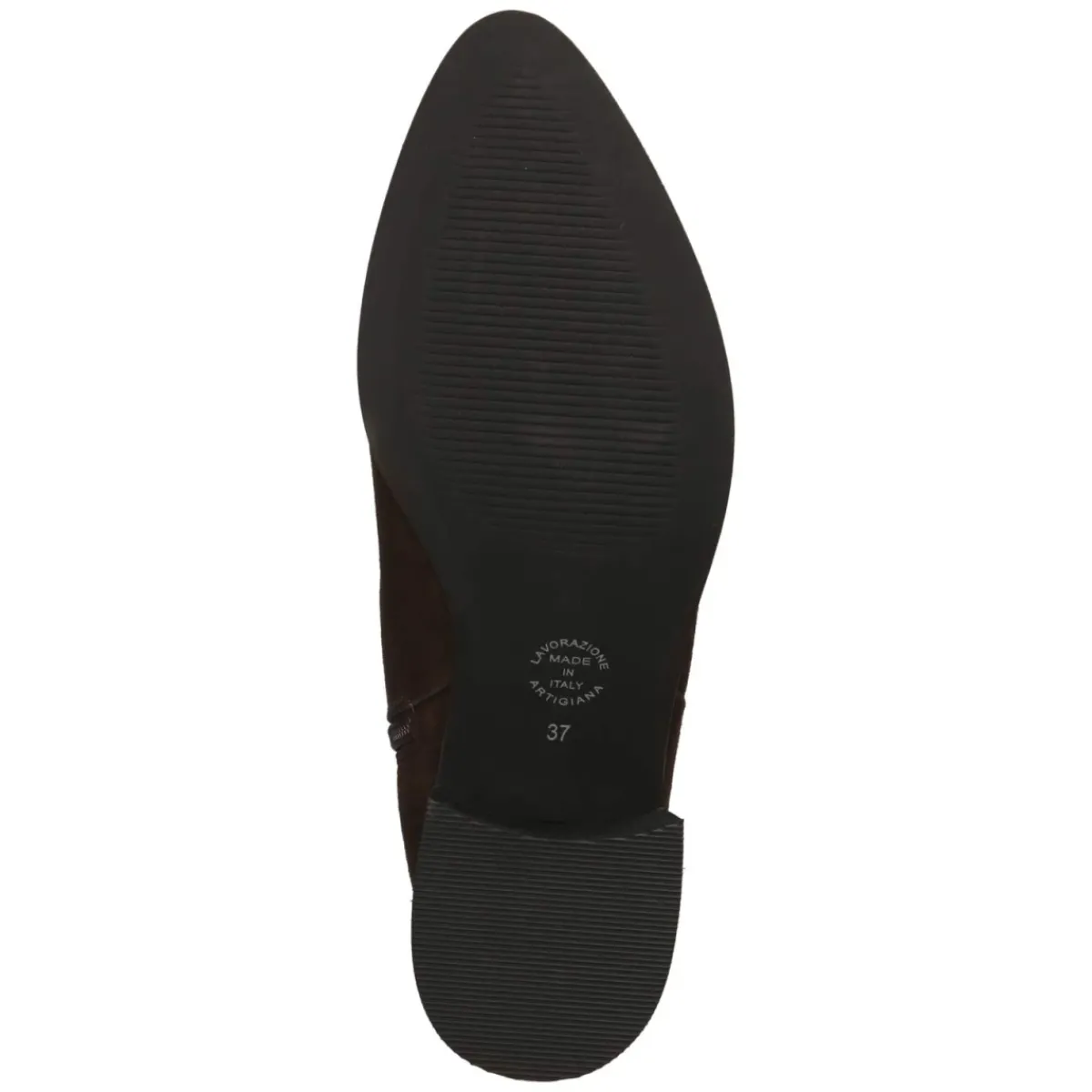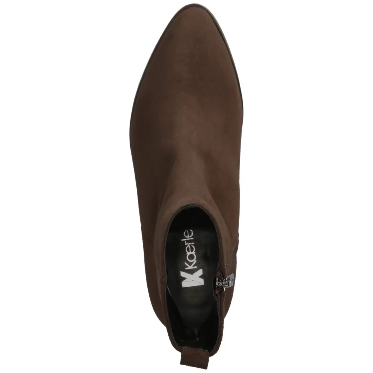 Die Kaerlek Stiefeletten verbinden edle Optik mit langlebigem Echtleder und präsentieren sich in warmem Braun als vielseitiger Begleiter für jeden Tag. Weiches Rauleder umschmeichelt den Fuß, die Lederdecksohle und das gepolsterte Fußbett sorgen für angenehmen Komfort, auch bei längeren Wegen. Dank Reißverschluss und Anziehlasche gelingt das Anziehen mühelos, während die flexible, rutschfeste Laufsohle verlässlichen Grip bietet. Der 3,5 cm hohe Blockabsatz und die runde Spitze formen eine zeitlose Silhouette, die zu Business wie Freizeit passt. Das Modell fällt normal aus und richtet sich an Damen, die Wert auf Qualität und Tragegefühl legen. Modetipp: Besonders stimmig wirkt der Look zu cropped Straight-Jeans und einem Strickmantel in Camel, dazu eine Lederhandtasche in cognacfarbenen Nuancen.