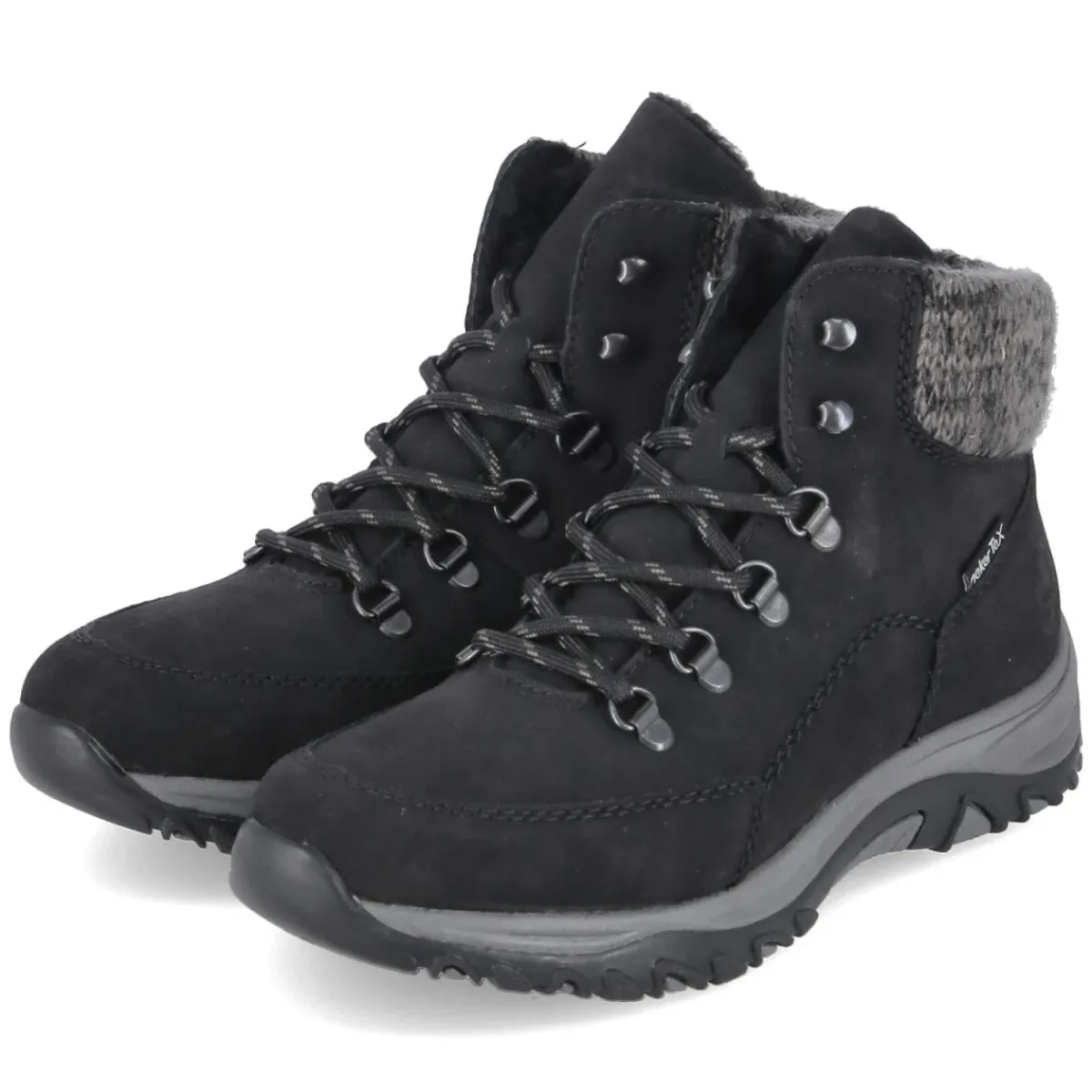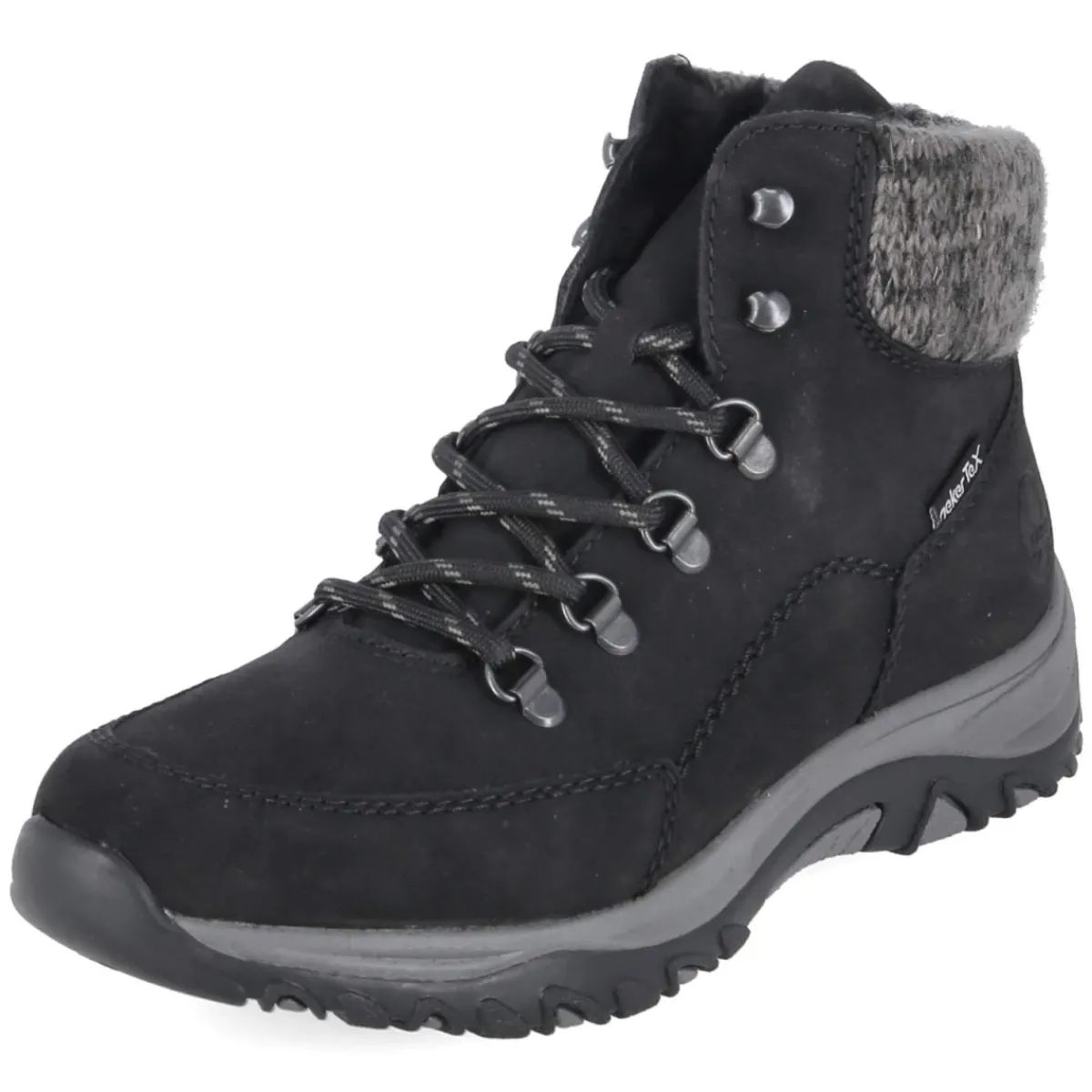 Das Modell Winterboots von Rieker vereint Schutz und Komfort in einer sportlichen Optik. Das wetterfeste Obermaterial aus pflegeleichtem Synthetik ist wasserabweisend und hält in Verbindung mit dem warmen Futter die Füße angenehm trocken und wohlig. Eine runde Schuhspitze und der gepolsterte Einstieg mit Strickkrempe sorgen zusammen mit dem weich gepolsterten, herausnehmbaren Fußbett für entspanntes Tragegefühl im Alltag. Der verstärkte Fersen- und Zehenbereich erhöht die Stabilität, während die profilierte, rutschfeste Laufsohle auf glatten Wegen zuverlässigen Grip bietet. Dank Schnürverschluss lässt sich der Sitz individuell regulieren, und die Passform fällt normal aus. Modetipp: Zum schwarzen Boot harmonieren eine gesteppte Kurzjacke, Wollmütze und schmale Jeans; ein grob gestrickter Schal setzt einen lässigen Akzent.