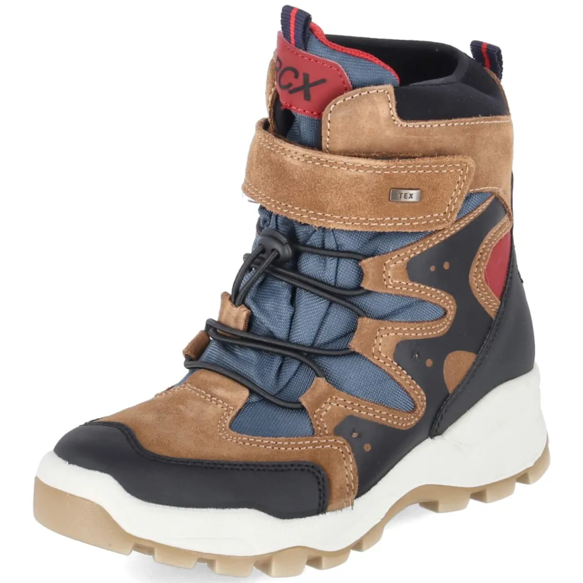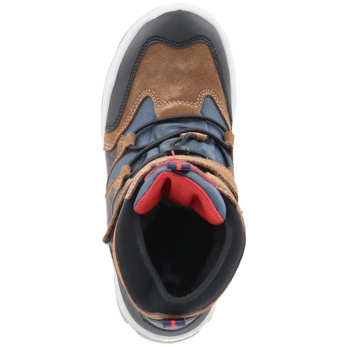 Die Winterboots von Imac in warmem Braun verbinden funktionale Ausstattung mit sportlicher Optik. Der wasserabweisende Material-Mix aus Leder und Textil schützt zuverlässig vor Nässe, während das kuschelige Warmfutter kleine Füße an kalten Tagen angenehm umhüllt. Eine runde Schuhspitze bietet Zehenfreiheit, der gepolsterte Einstieg sorgt für Komfort, und eine Anziehlasche erleichtert das Hineinschlüpfen. Klettverschluss und Elastikband garantieren einen adaptiven, sicheren Sitz, die rutschfeste Profilsohle gibt Halt auf Matsch, Schnee und glatten Wegen. Das Wechselfußbett mit textiler Decksohle lässt sich zum Lüften oder für eigene Einlagen herausnehmen. Die Passform fällt normal aus, verstärkte Zehen- und Fersenbereiche erhöhen die Strapazierfähigkeit. Farbige Elemente in Schwarz, Blau und Rot setzen dynamische Akzente zum braunen Obermaterial. Modetipp: Perfekt zu einem navyfarbenen Schneeanzug und einer gemusterten Strickmütze, die die blauen Details aufgreift.