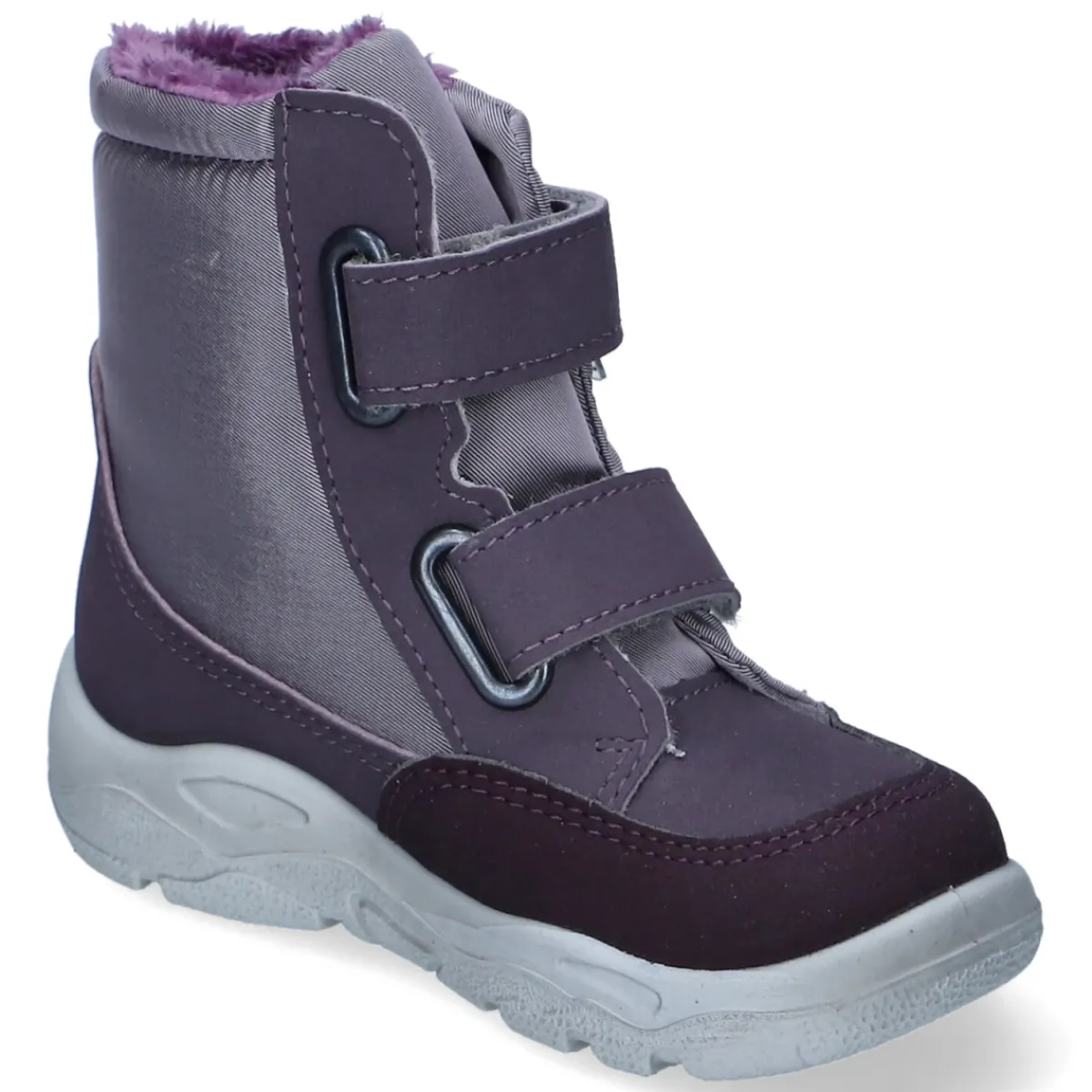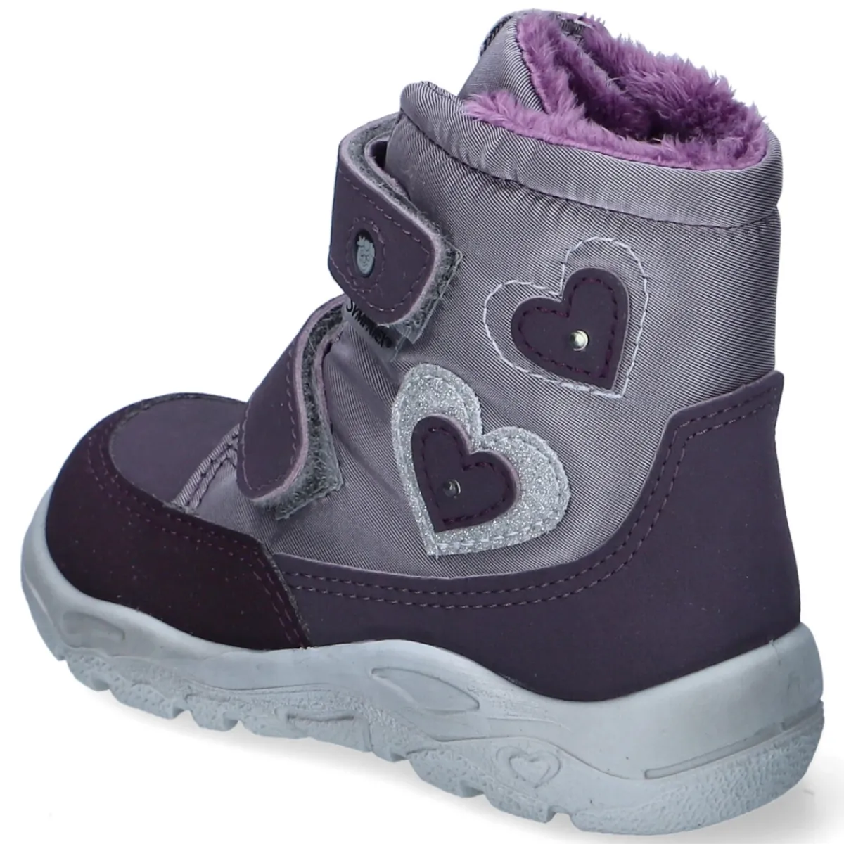 Die Winterstiefeletten MADDI von Pepino vereinen kindgerechten Komfort mit wetterfesten Eigenschaften. Das Obermaterial aus Textil und Synthetik zeigt sich in lebhaftem Lila, veredelt durch Herz-Applikationen, dekorative Nähte und silberne Highlights. Dank SympaTEX sind die Boots wasserdicht, winddicht und atmungsaktiv – ideal für wechselhaftes Winterwetter. Zwei praktische Klettverschlüsse erleichtern das An- und Ausziehen, die runde Spitze bietet viel Zehenfreiheit. Innen sorgt ein warmes, zugleich leichtes Futter mit Textildecksohle für behagliches Tragegefühl an kühlen Tagen. Eine flexible, rutschhemmende Laufsohle mit leichtem Profil unterstützt sicheren Halt auf nassem Asphalt und winterlichen Wegen. Blinkende LEDs setzen spielerische Akzente bei jedem Schritt. Der Schnitt fällt normal aus und passt so unkompliziert in den gewohnten Größenrahmen. Modetipp: Harmoniert toll zu einer beerenfarbenen Softshelljacke und dunkler Thermojeans mit reflektierenden Details.