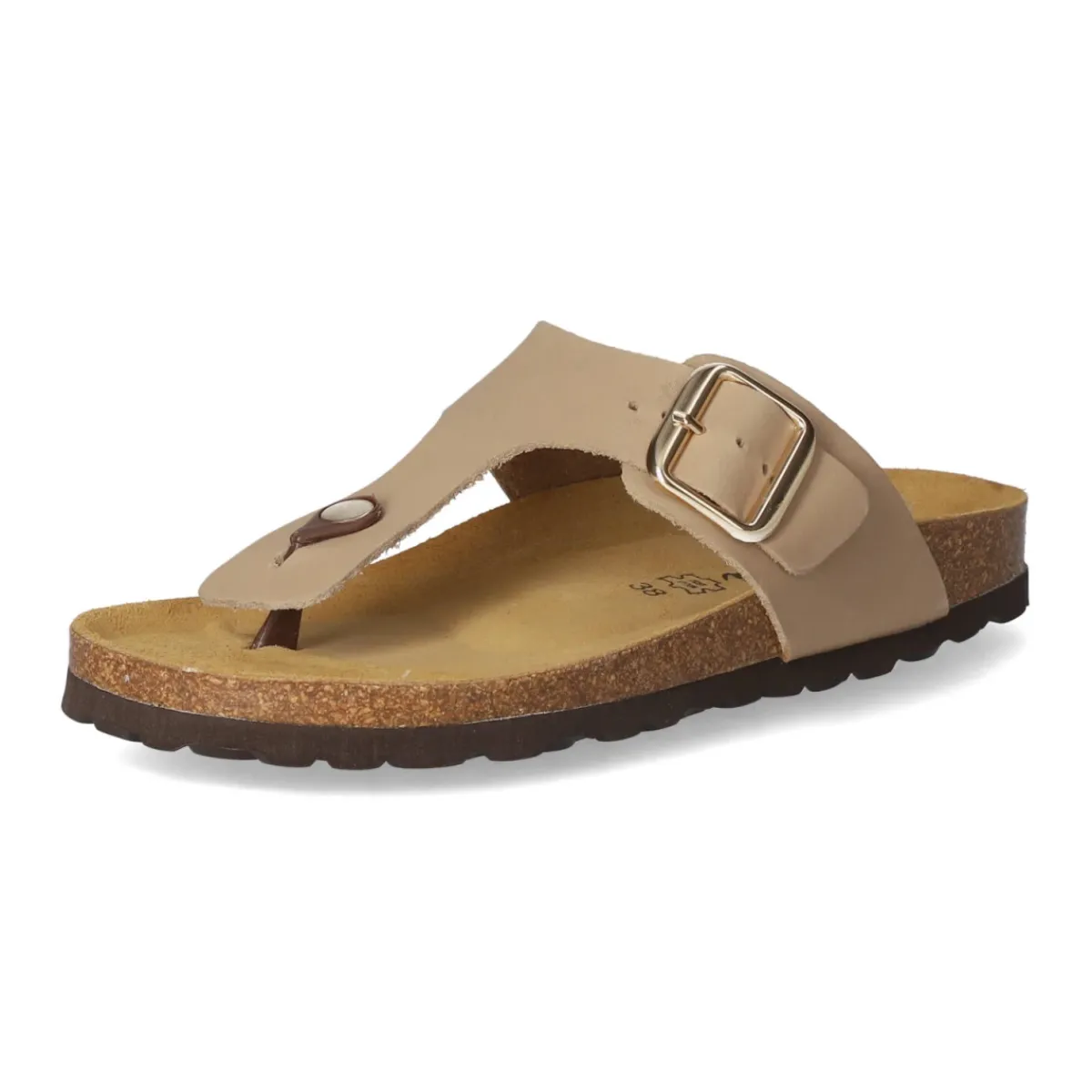 Der Zehentrenner von Beliana vereint puristisches Design mit hochwertigen Materialien. Das Obermaterial aus weichem Rauleder in zeitlosem Taupe wird von goldglänzenden Highlights akzentuiert und verleiht jedem Look eine edle Note. Eine praktische Schnalle ermöglicht die individuelle Anpassung, während die vorgeformte Decksohle aus Echtleder gemeinsam mit dem tiefen, anatomisch inspirierten Fußbett für spürbaren Komfort sorgt. Die flexible Profilsohle unterstützt natürliche Bewegungsabläufe und bietet angenehme Stabilität im Alltag. Offen gestaltet, unterstreicht die Schuhspitze die leichte, feminine Anmutung des Modells. Die langlebige Verarbeitung aus Echtleder macht diesen Zehentrenner zu einem zuverlässigen Begleiter über viele Saisons hinweg. Modetipp: Besonders harmonisch wirkt das Modell zu fließenden Leinenhosen oder einem Midikleid in Naturtönen; filigraner Goldschmuck und eine strukturierte Basttasche greifen den dezenten Glanz stilvoll auf.