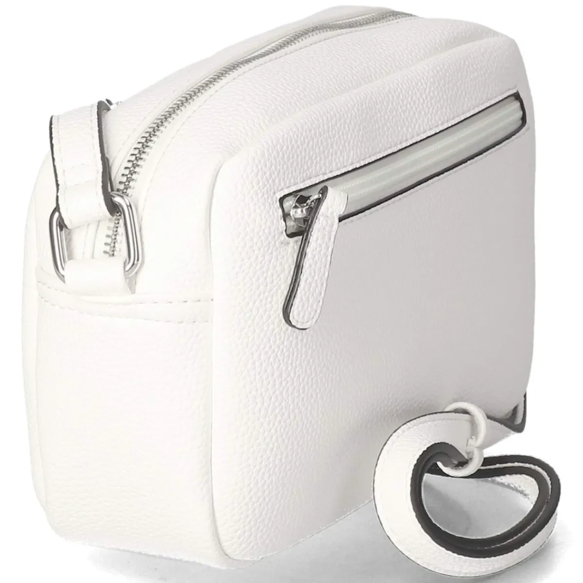Die weiße Camera Bag setzt auf klare Linien und kompakten Komfort. Mit ca. 15 x 21 x 7 cm und rund 2 Litern Volumen bewahrt sie Essentials übersichtlich auf, ohne aufzutragen. Ein Reißverschluss sichert das Hauptfach, innen ergänzen ein Steckfach und ein weiteres Reißverschlussfach die Organisation. Außen sorgt eine durchdachte Einteilung mit vorderem Steckfach, zusätzlichem Frontfach mit Zipper und einem rückseitigen Reißverschlussfach für schnellen Zugriff. Der verstellbare Schultergurt mit ca. 150 cm Länge ermöglicht entspanntes Crossbody-Tragen oder lässig über der Schulter. Das strahlende Weiß verleiht Outfits eine frische Note und hebt die klare Silhouette hervor. Modetipp: Zu monochromen Looks in Creme bis Sand und minimalistischen Sneakern getragen entsteht ein moderner Ton-in-Ton-Effekt.
