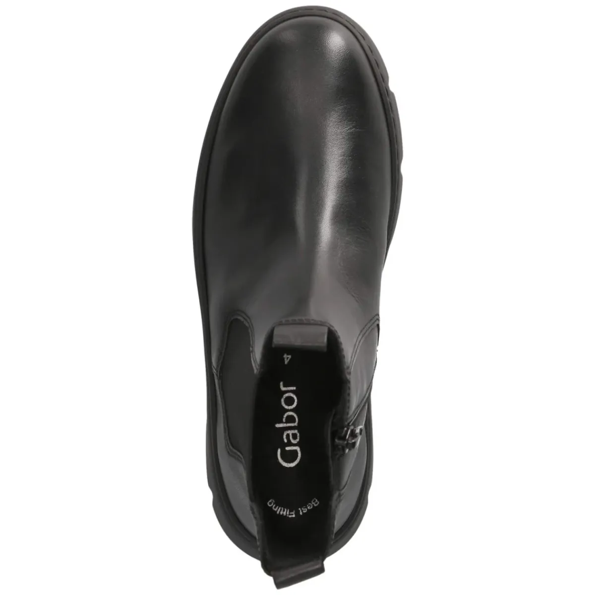 Zeitloser Auftritt mit komfortabler Ausstattung: Die Chelsea Boots von Gabor zeigen sich in edlem Schwarz und überzeugen mit langlebigem Echtleder in glatter Ausführung. Die runde Spitze und die moderne Plateausilhouette mit 5 cm Absatzhöhe sorgen für einen femininen Look mit stabiler Auftrittsfläche. Ein seitlicher Reißverschluss ergänzt den elastischen Einsatz am Schaft und ermöglicht ein unkompliziertes Hineinschlüpfen, während zwei Anziehlaschen praktische Unterstützung bieten. Innen punktet eine Textildecksohle, das gepolsterte, herausnehmbare Fußbett erhöht den Tragekomfort und lässt sich bei Bedarf gegen eigene Einlagen tauschen. Die verstärkte Ferse und die rutschhemmende Plateausohle geben Halt im Alltag. Der Schnitt fällt normal aus. Modetipp: Zu Cropped-Jeans und Wollmantel entsteht ein cleanes City-Outfit, zu Midikleid und blickdichter Strumpfhose ein eleganter Contrast-Look.