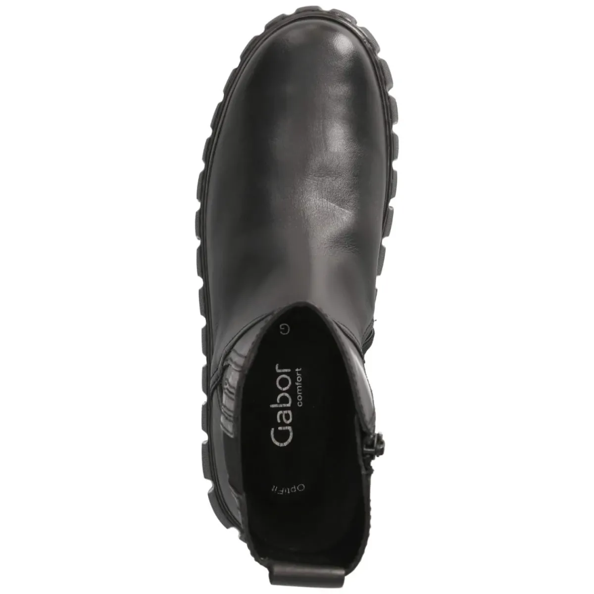 Der Chelsea Boot von Gabor für Damen verbindet klassisches Design mit funktionalem Komfort. Schwarzes Glattleder in langlebiger Echtleder-Qualität sorgt für einen edlen Look, während eine rutschfeste Plateausohle sicheren Halt im Alltag bietet. Die runde Schuhspitze und der elastische Einsatz am Schaft garantieren Bequemlichkeit, ergänzt durch einen praktischen Reißverschluss und eine Anziehlasche für mühelosen Einstieg. Innen verwöhnt eine textile Decksohle, das komfortable Wechselfußbett lässt sich bei Bedarf austauschen. Das Modell fällt normal aus und zeigt mit feinem Zierstreifen dezente Details. Vielseitig kombinierbar vom Büro bis zum Wochenende, bleibt der Klassiker zuverlässig und modern. Modetipp: Besonders stimmig zu verkürzten Straight-Leg-Jeans und Oversize-Mantel, dazu eine strukturierte Ledertasche für einen cleanen City-Look.