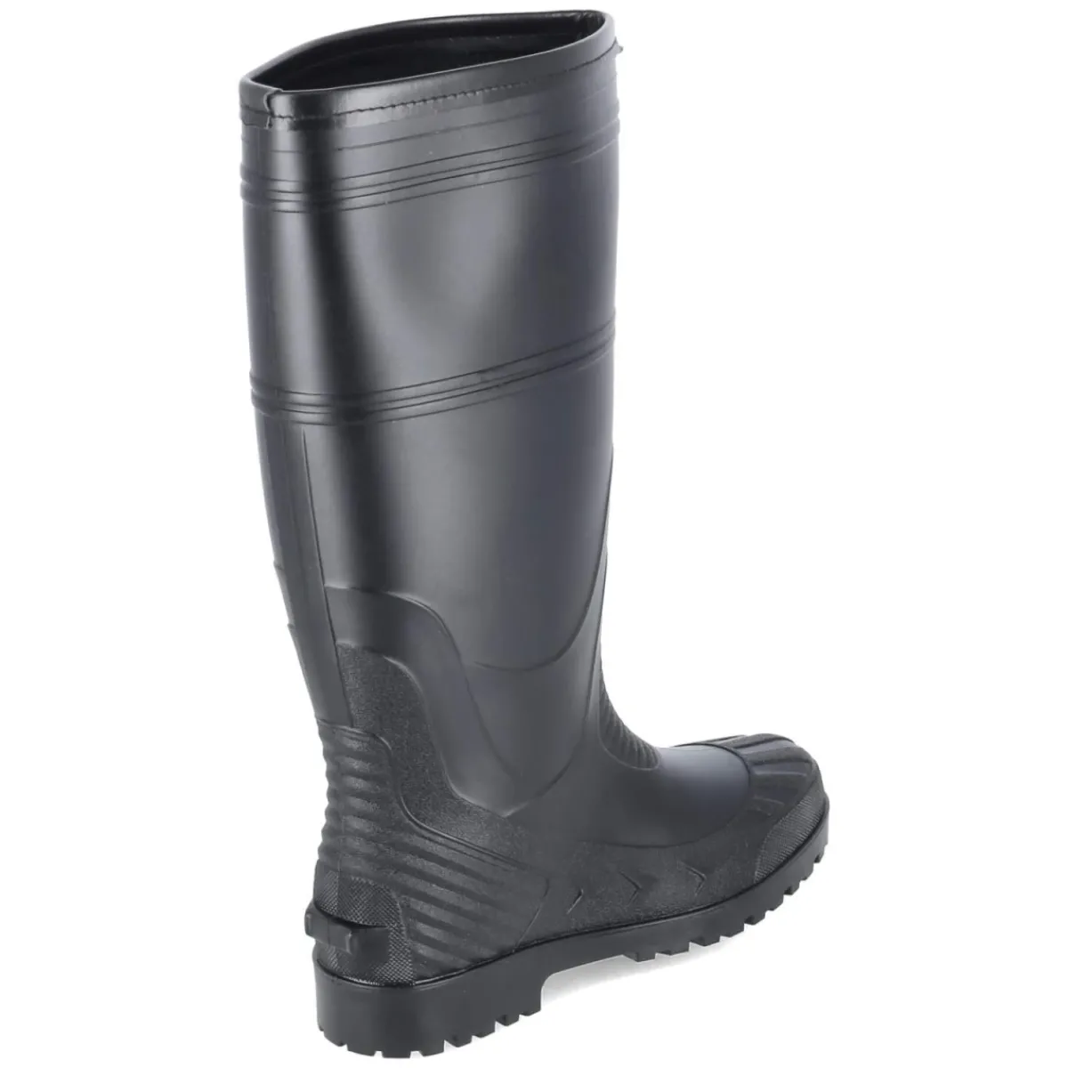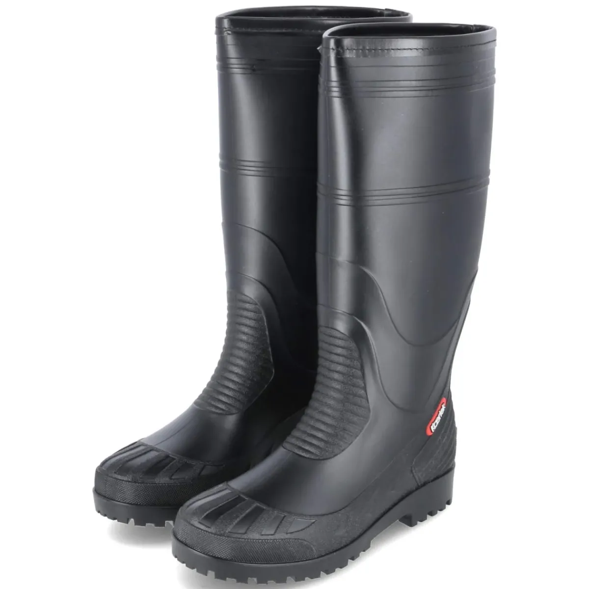 Der Herren-Gummistiefel von Kaerlek verbindet praktische Robustheit mit moderner Optik. Das wasserfeste Obermaterial aus Synthetik schützt zuverlässig vor Nässe, während die wasserabweisende Verarbeitung und der verstärkte Fersen- und Zehenbereich zusätzlichen Schutz bieten. Die runde Spitze und das gepolsterte, textile Wechselfußbett sorgen für angenehmen Tragekomfort, der Schaft misst ca. 35 cm in der Höhe und etwa 40 cm im Umfang. Dank Ausziehhilfe an der Ferse und Schlupfdesign gelingt das An- und Ausziehen unkompliziert. Die flexible Profilsohle bietet sicheren Grip auf rutschigem Untergrund – ideal in Stadt und Natur. Fällt normal aus und eignet sich für erwachsene Träger, die zuverlässige Begleiter bei Regen suchen. Modetipp: Mit dunkler Raw Denim, Wachsjacke und grob gestrickten Socken entsteht ein funktionaler, urbaner Look.