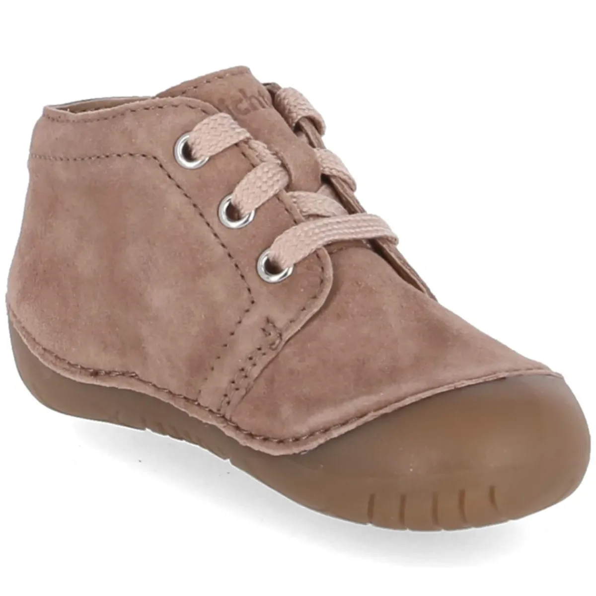 Der braune Halbschuh von Richter verbindet strapazierfähiges Echtleder mit einem natürlichen Look, der zu vielen Baby-Outfits passt. Das Obermaterial aus Leder und das weiche Lederfutter sorgen gemeinsam mit der hautfreundlichen, herausnehmbaren Lederdecksohle für ein angenehm trockenes Fußklima. Eine flexible, rutschhemmende Laufsohle mit schützender Zehenkappe unterstützt die ersten Schritte, während die runde Schuhspitze genügend Zehenfreiheit lässt. Dank Schnürung lässt sich der Sitz individuell anpassen, ein gepolsterter Einstieg erhöht den Komfort im Alltag. Das Wechselfußbett erleichtert die Pflege und begleitet wachsende Füße. Die Passform fällt normal aus und bietet zuverlässigen Halt. Modetipp: Der warme Braunton harmoniert besonders schön mit Strick in Naturtönen, gerippten Leggings und leichten Cordhosen.