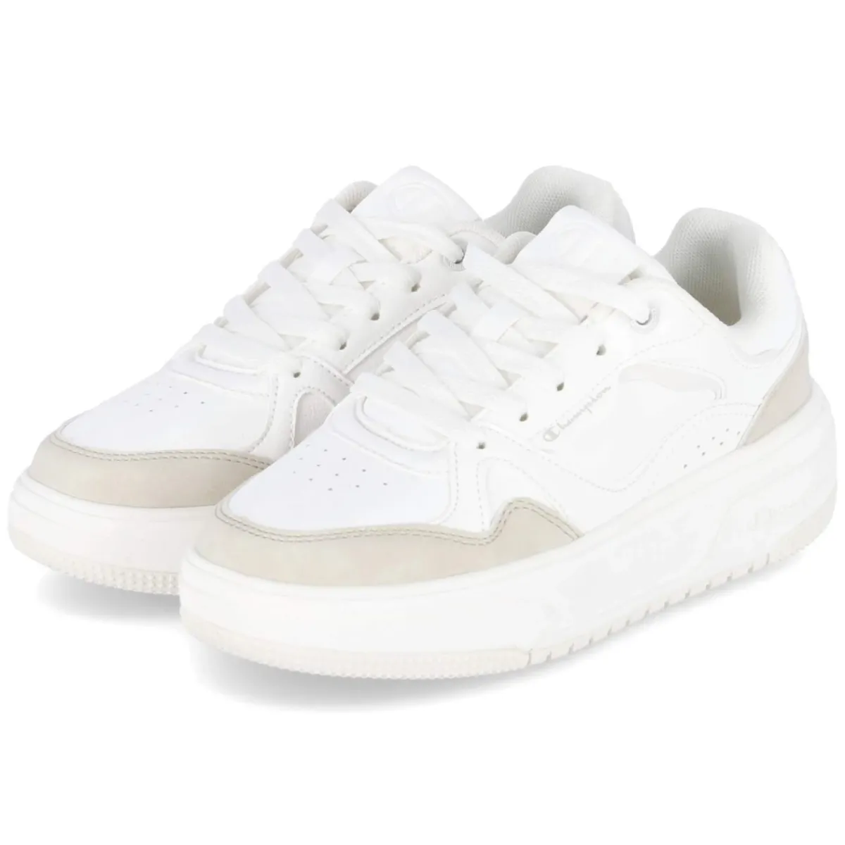 Der Champion Low Sneaker in strahlendem Weiß verbindet klare Linien mit funktionalen Details für lässige Looks im Alltag. Das Synthetik-Obermaterial zeigt sich pflegeleicht und wird von einem beigen, verstärkten Fersen- und Zehenbereich akzentuiert. Eine dezente Lochung sorgt für leichte Belüftung, die runde Schuhspitze und der klassische Schnürverschluss gewährleisten einen zeitlosen Auftritt. Innen unterstützt ein gut gepolstertes Fußbett mit textiler Decksohle den Tragekomfort, der gepolsterte Einstieg umschließt angenehm den Knöchel. Die rutschhemmende Laufsohle bietet Halt auf verschiedenen Untergründen, das relaxt leichte Tragegefühl begleitet mühelos durch lange Tage. Dank Wechselfußbett lässt sich individuelle Unterstützung integrieren. Hinweis zur Passform: fällt schmaler aus, daher empfiehlt sich eine Nummer größer. Modetipp: Mit Cropped-Denim, weißem Tee und beigem Trench entsteht ein cleaner City-Look.