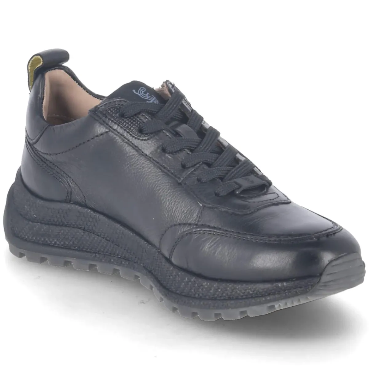 Der Low Sneaker von Salamander setzt auf zeitlose Zurückhaltung und hochwertige Verarbeitung. Schwarzes Glattleder trifft auf eine runde Silhouette, die dank gepolstertem Einstieg, verstärktem Fersen- und Zehenbereich sowie flexibler Laufsohle zuverlässig durch den Tag trägt. Schnürsenkel und seitlicher Reißverschluss erleichtern das An- und Ausziehen, unterstützt von einer praktischen Anziehlasche. Die lederne Decksohle und das komfortable, herausnehmbare Wechselfußbett bieten angenehme Dämpfung und ermöglichen die Nutzung eigener Einlagen. Die Passform fällt normal aus und überzeugt mit sicherem Halt. Vielseitig kombinierbar begleitet dieser Damensneaker souverän Freizeit- und City-Looks, von Denim bis Blazer. Modetipp: Zu gerade geschnittener Jeans und einem cleanen Trench entsteht ein moderner, urbaner Auftritt.