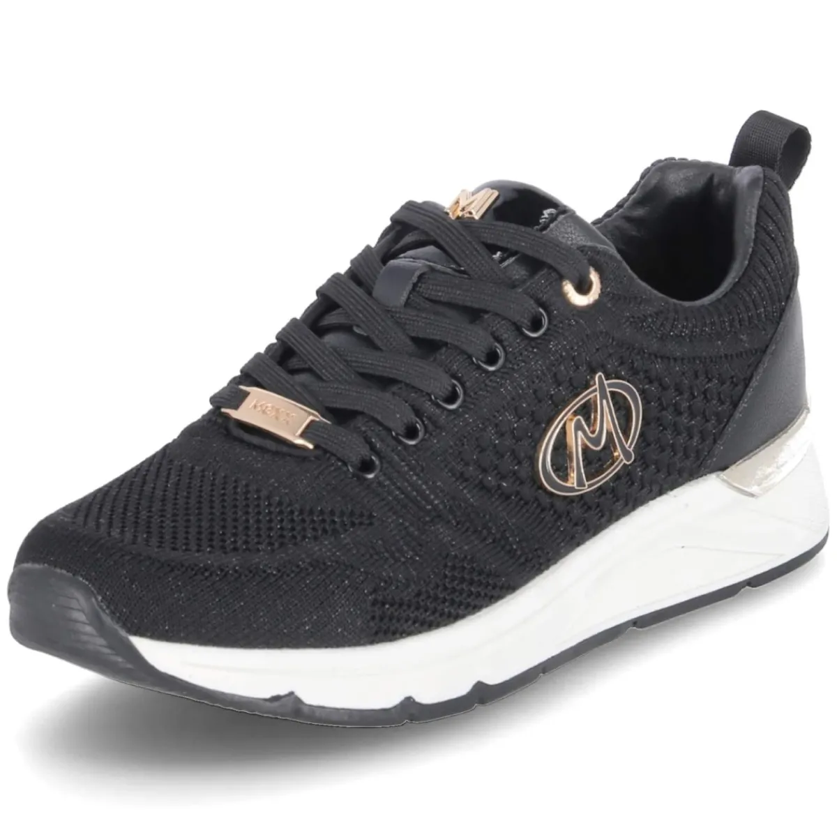 Der Low Sneaker ROX ORLANDO von Mexx verbindet eine moderne Strick-Optik mit dezent glitzerndem Mesh und setzt den schwarzen Allrounder elegant in Szene. Obermaterial aus Textil und Synthetik trifft auf eine runde Spitze, verstärkten Zehen- und Fersenbereich sowie einen weich gepolsterten Einstieg. Schnürsenkel sorgen für variablen Halt, das gepolsterte Wechselfußbett aus Synthetik erhöht den Komfort und kann bei Bedarf ausgetauscht werden. Die flexible, rutschhemmende Laufsohle bietet zuverlässigen Grip im urbanen Alltag. Mit markanten Markendetails und schlanker Silhouette gelingen vielfältige Kombinationen von Denim bis Midirock; der Sneaker fällt größengetreu aus. Modetipp: zu Cropped Straight Jeans, weißem T‑Shirt und Oversize-Blazer tragen, dazu gerippte Socken, die die Strickstruktur aufgreifen.