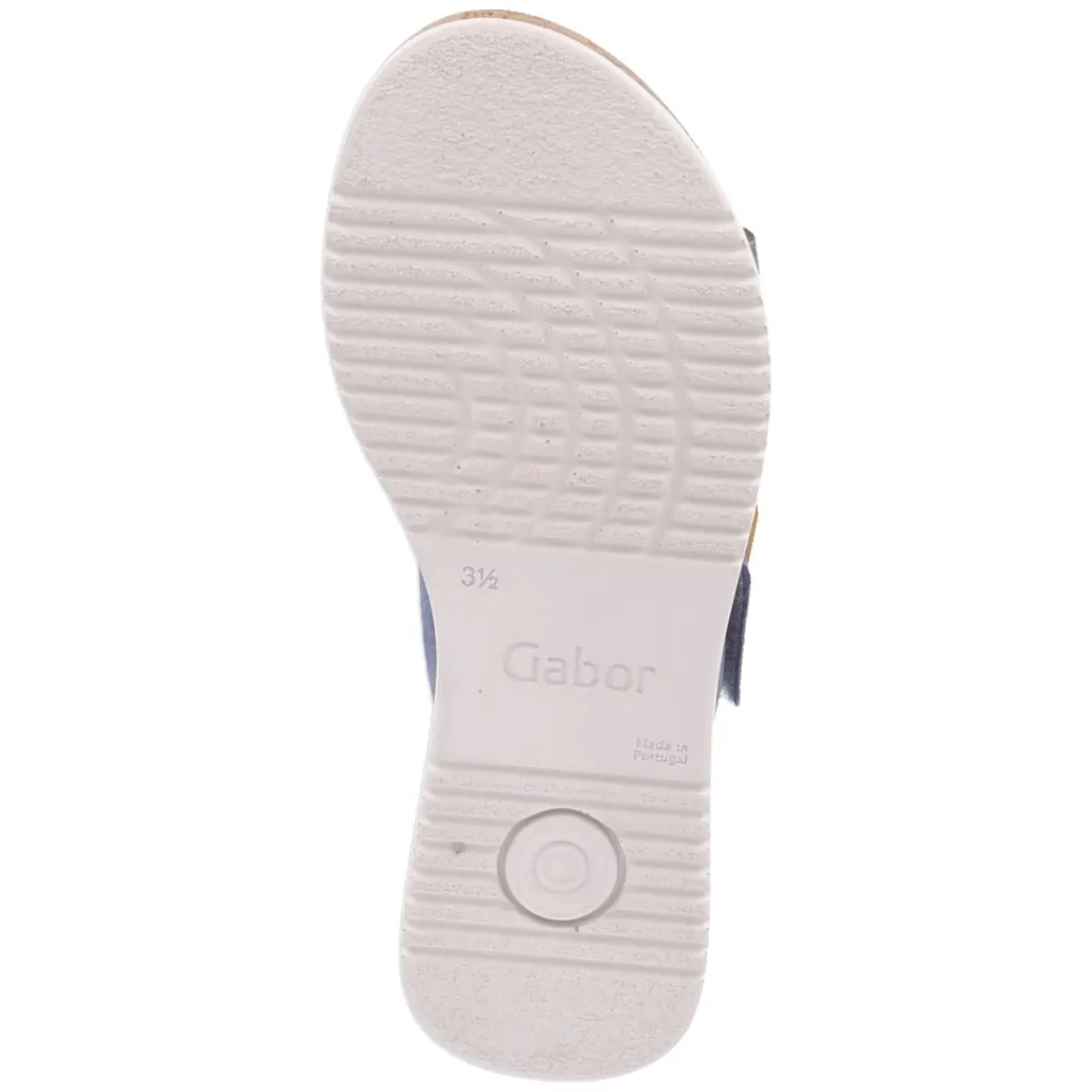 Diese blauen Gabor Sandalen verbinden sommerliche Leichtigkeit mit durchdachtem Komfort. Weiches Rauleder mit samtiger Oberfläche schmiegt sich angenehm an den Fuß, während die offene Spitze für luftiges Tragegefühl sorgt. Der bequeme Klettverschluss erleichtert das Anpassen, ergänzt durch einen Klettverschlussriemen mit Zierschnalle und einen Knöchelriemen mit Elastikeinsatz für zusätzlichen Halt. Ein gepolstertes Fußbett und die weich abgefütterte Lederdecksohle bieten sanfte Dämpfung bei jedem Schritt. Die stabile Laufsohle setzt mit einem Rahmen in Korkoptik einen natürlichen Akzent und gibt verlässliche Standfestigkeit. Die Passform fällt normal aus und macht die Wahl unkompliziert. Modetipp: Zu fließenden Sommerkleidern in Weiß oder Pastell und einer Strohtasche entsteht ein frischer, mediterraner Look.