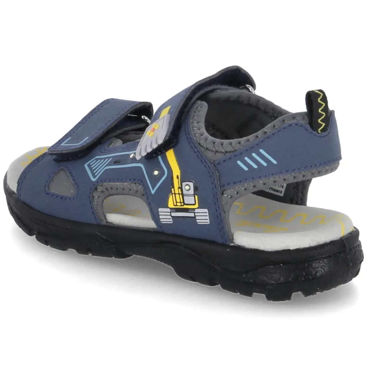 Die Sandalen KODO von Lurchi verbinden kindgerechten Spaß mit alltagstauglichem Komfort. Das leuchtende Blau wird durch ein seitliches Baggermotiv mit drei blinkenden LEDs spielerisch in Szene gesetzt und sorgt bei jedem Schritt für ein Highlight. Der moderne Material-Mix aus Textil und Synthetik liegt angenehm am Fuß, die offene Schuhspitze lässt Luft zirkulieren, während die weiche synthetische Decksohle sanft abfedert. Zwei praktische Klettverschlüsse erleichtern das An- und Ausziehen und erlauben eine passgenaue Regulierung. Die flexible Profilsohle bietet zuverlässigen Grip auf dem Schulhof und beim Toben. Für Grundschulkinder entworfen und in der Passform normal ausfallend, eignen sich die KODO als unkomplizierte Sommerbegleiter. Modetipp: Zu Denim-Shorts und einem T-Shirt mit gelbem Print harmoniert das Blau besonders gut; sportliche Kurzsocken setzen die LED-Effekte zusätzlich in Szene.